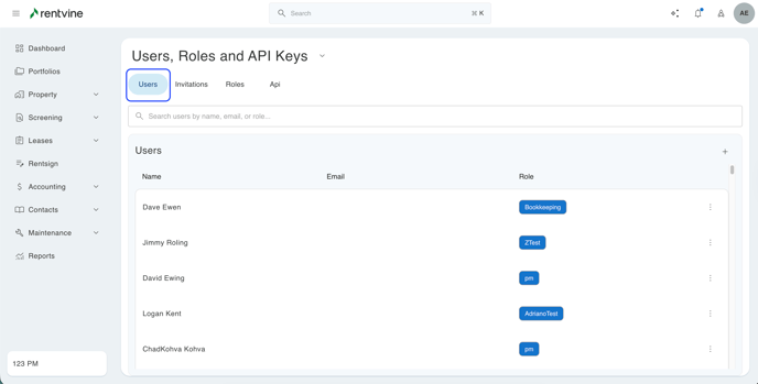 - The first tab here will be Users. You can control all of the users who have access to the administrative side of your account. This will also be where you set the role for different users in the system.