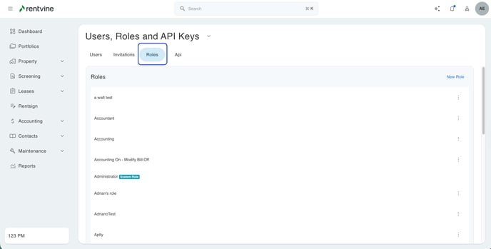 - The next tab you will see on this page is Roles. Here you will be able to create new roles and set the permissions for your users in the system.