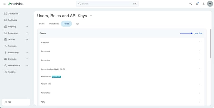 - To create a role for your users, you can click the "New Role" button in the top right of this box.
