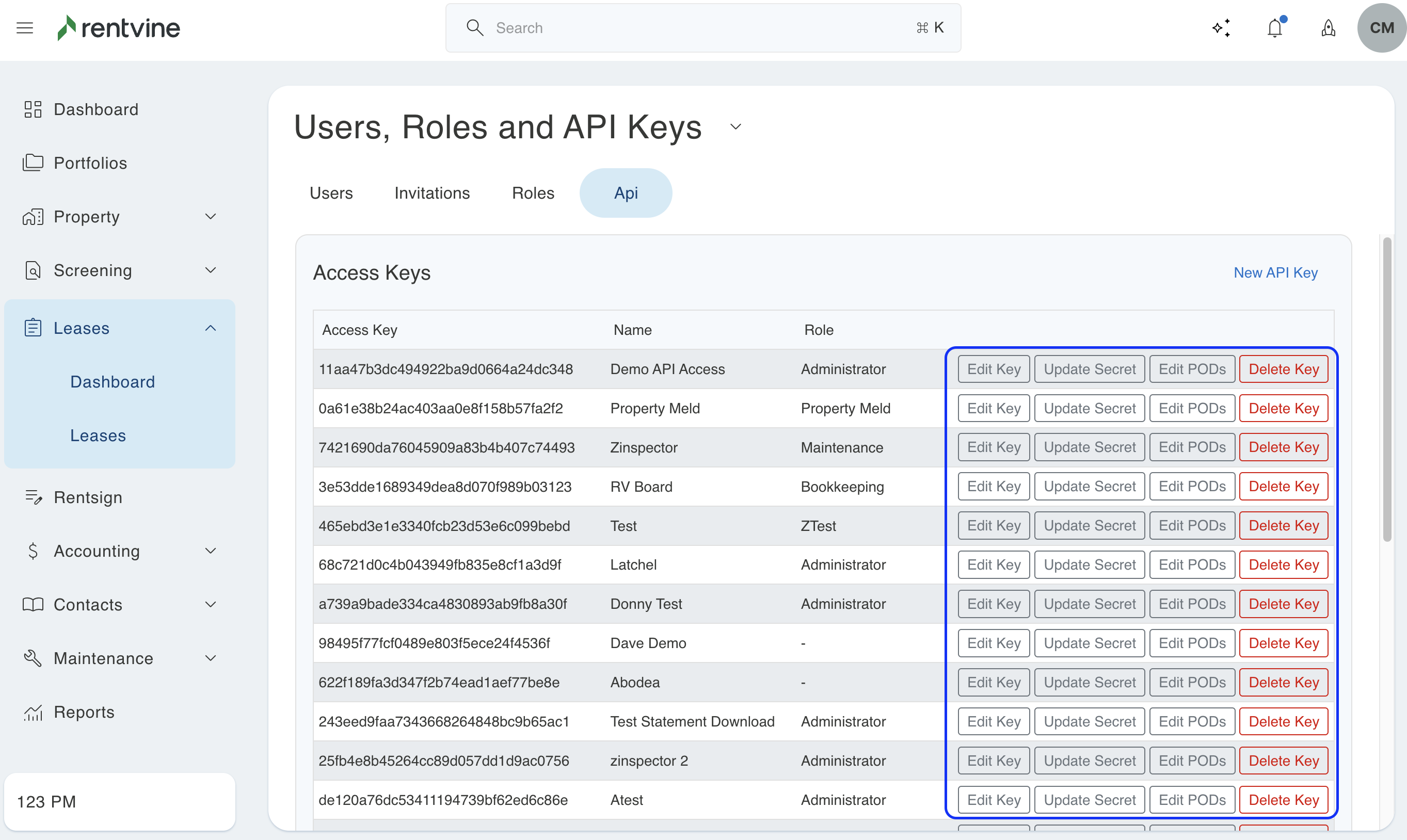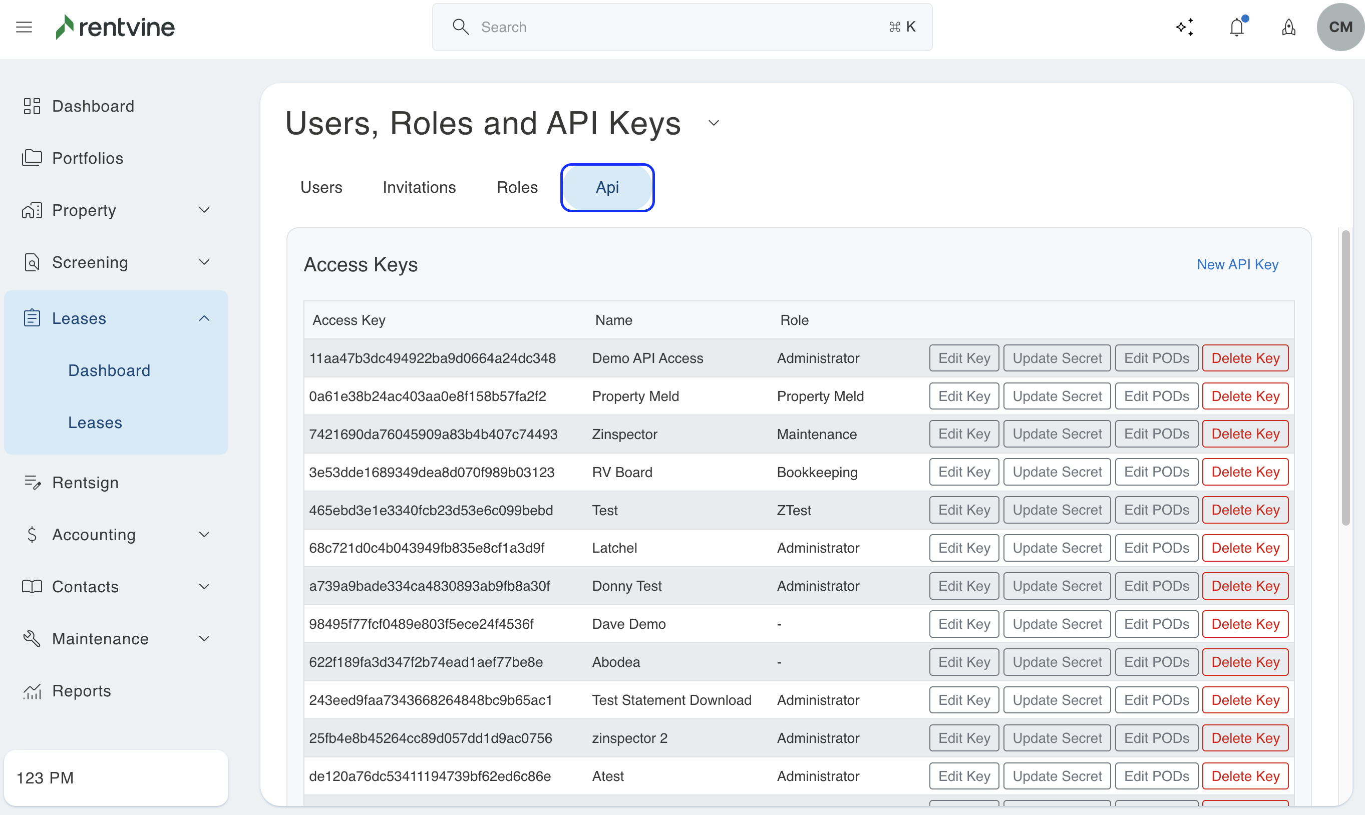- The last setting in here is going to be the API. Here you can create a new API key that can be sent to third-party vendors in order for them to access information in your system.