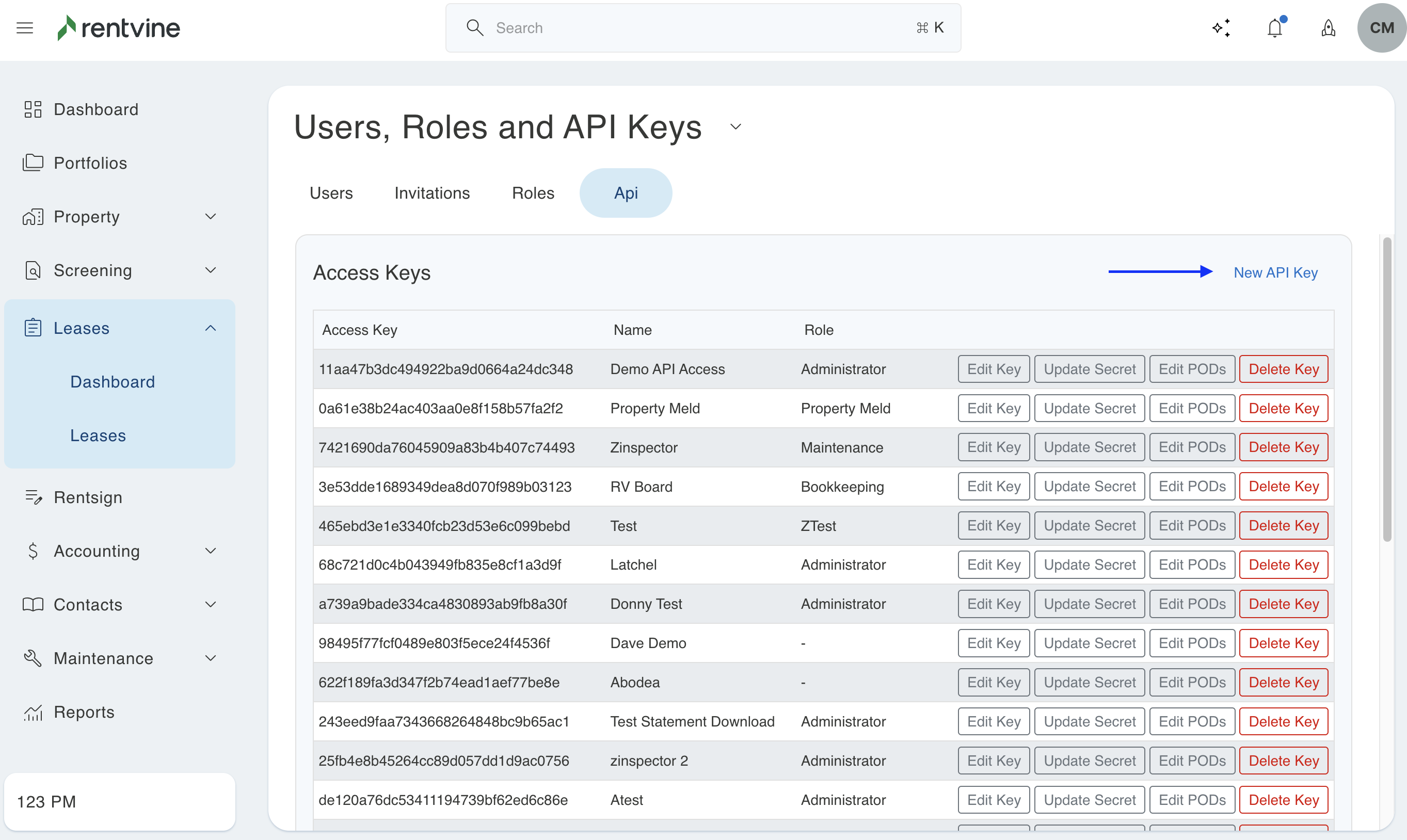 - To create an API key, you can click the "New API Key" button in the top right of this tab.