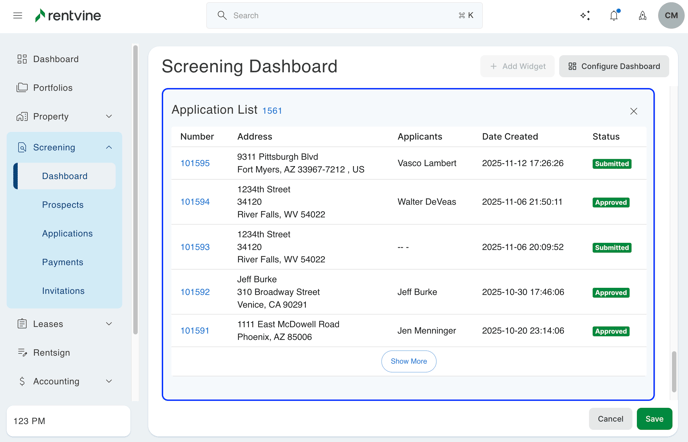 - If you need any further assistance with creating custom application widgets, please don't hesitate to contact our support team at support@rentvine.com. We are here to help you with any customizations you may require.