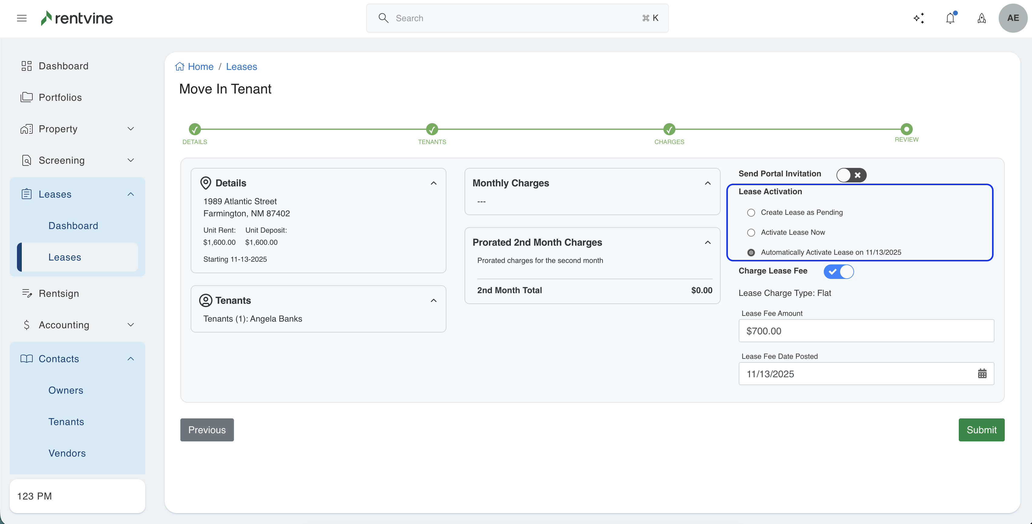 - In here, you can click the edit button in the top right. This will allow you to set your preference for lease activation. You can choose between if you would like to manually activating the lease, if the lease should be automatically set to activate upon creation, or if you would like the lease to activate based on the start date set earlier in the move-out.
