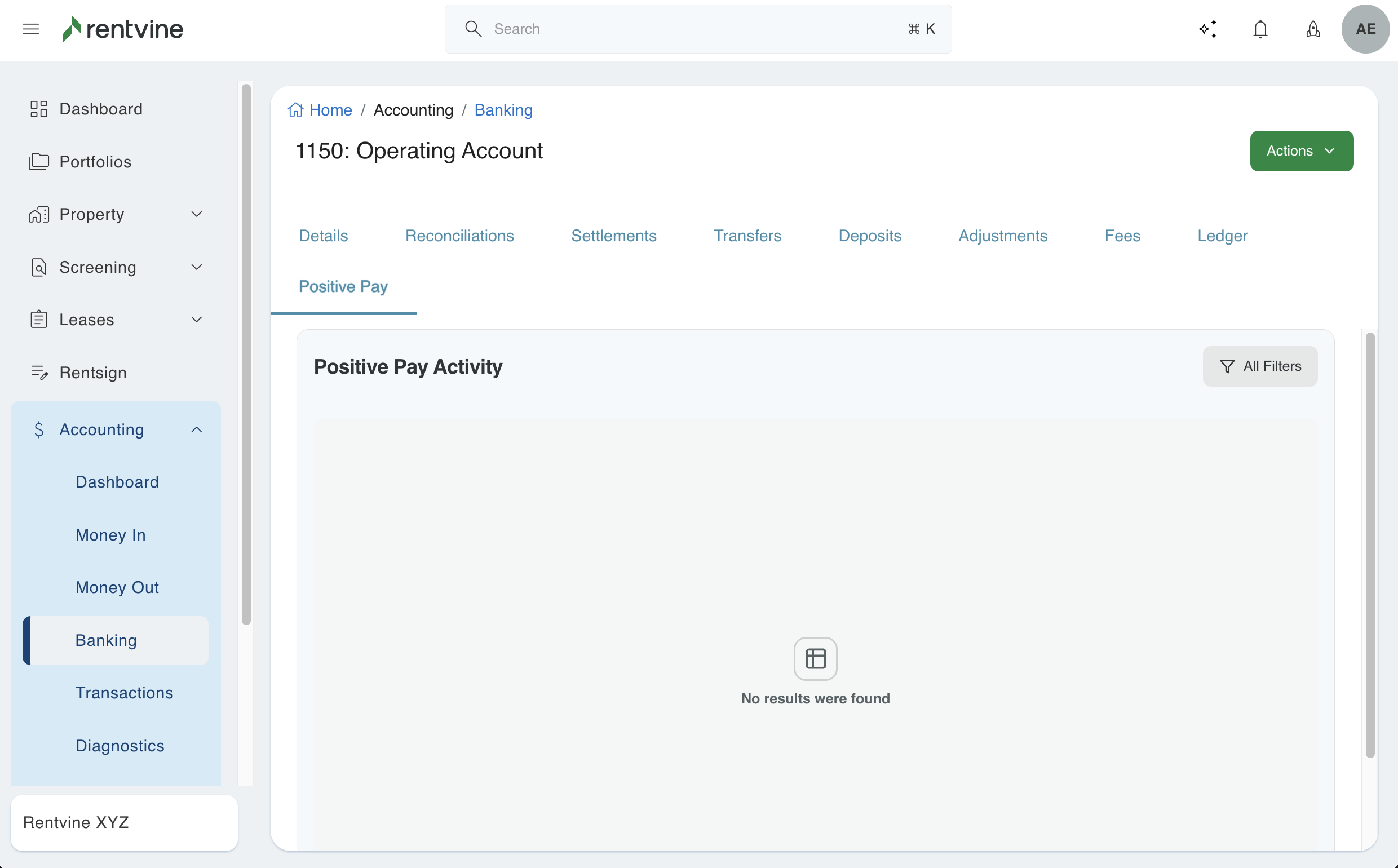 - Enterprise Pay Positive Pay is a new Rentvine feature that automates the creation and secure delivery of Positive Pay files to Enterprise Banks. This removes the need for daily manual uploads, helping reduce fraud risks and administrative overhead.