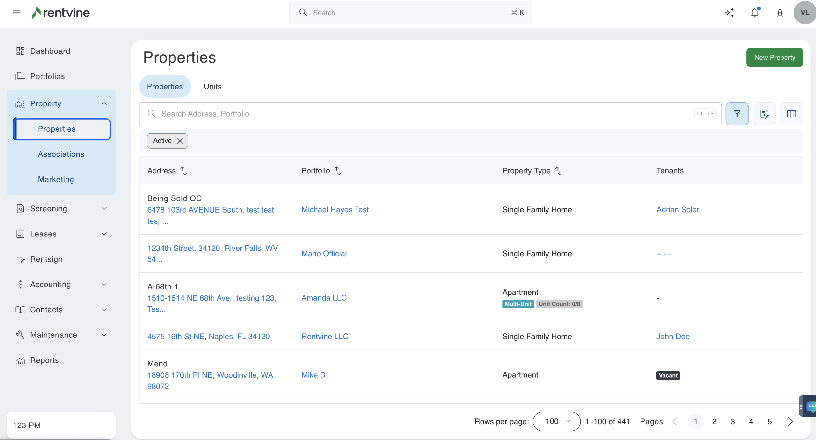 - First, on the home screen, hover to the left side of the screen and click on Property. In the search bar, type your desired property and select it.