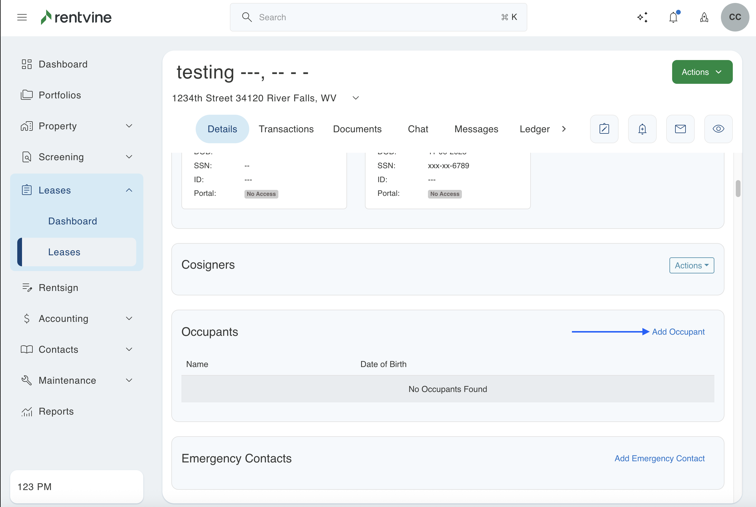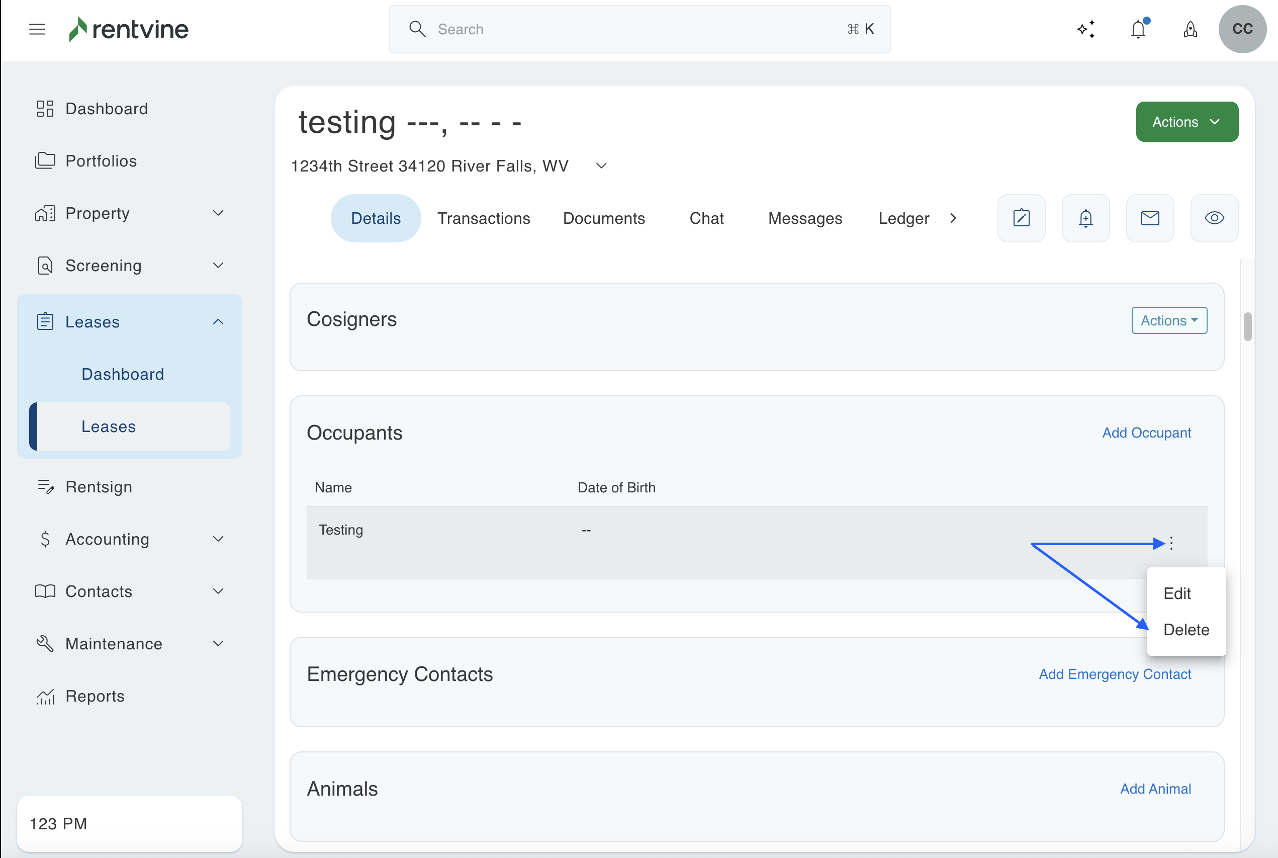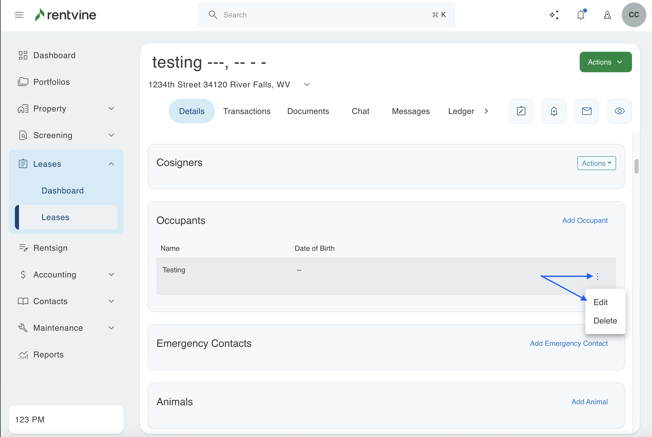 Do your tenants have occupants living with them and you would like to record them on the lease? This article will show you how to add, edit, or delete an occupant on any lease in Rentvine