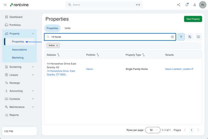 1. Click on the "Property" tab on the left side of the screen. Under that, click on the tab called "Properties" to pull up the entire list of properties.