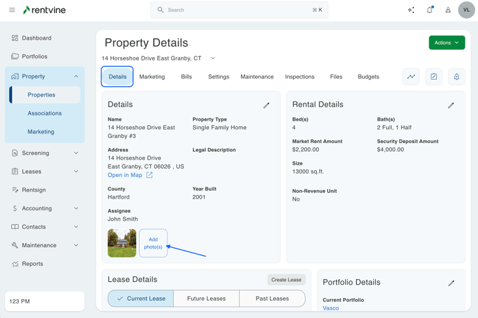 3. The next step is to go into the Images section inside the property details page. In this section, you will be able to add images by dragging the file of the picture into the upload box or clicking on it to bring up your files.