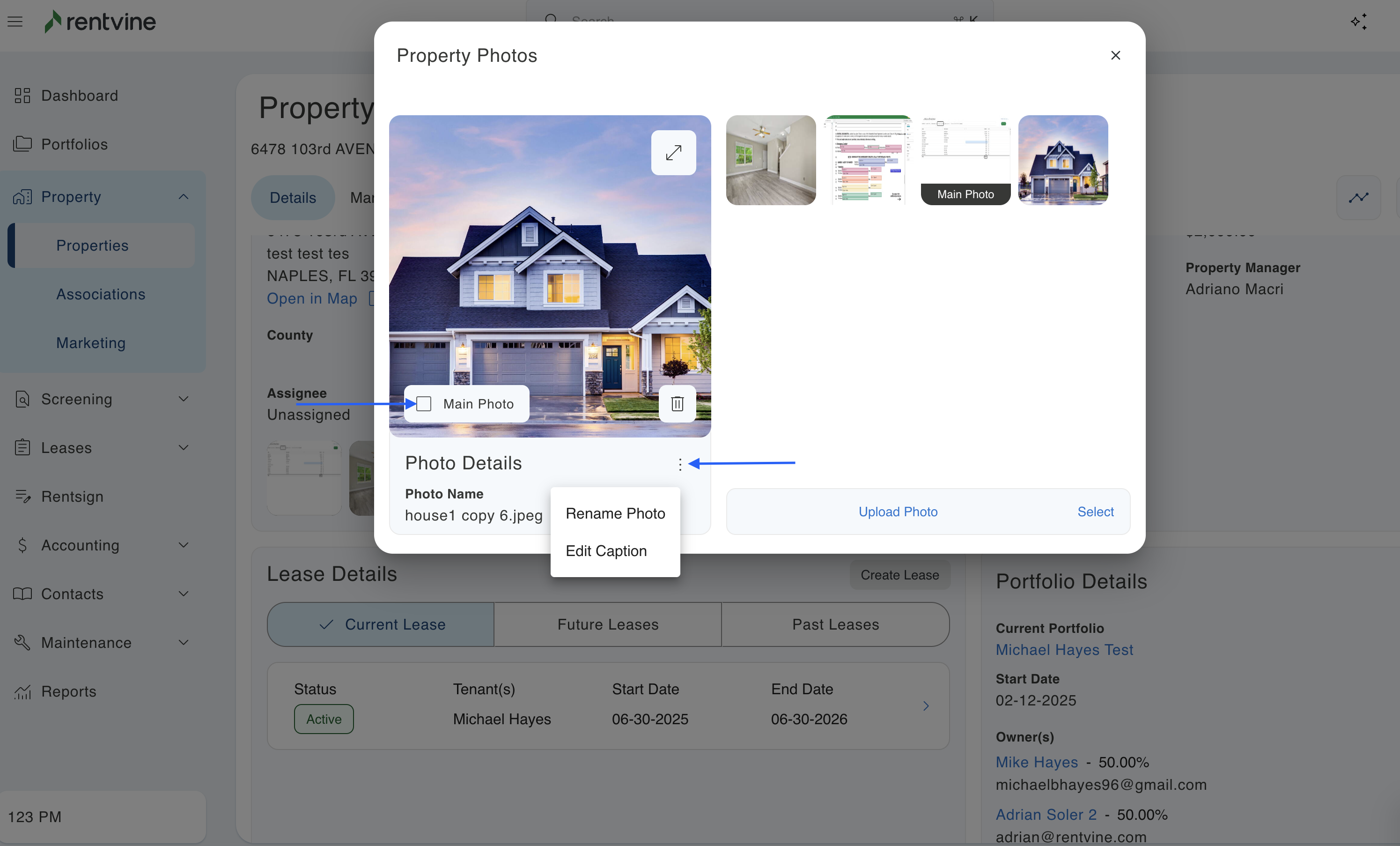5. If you click on the ellipses on a specific image it will bring up the options for it. The options are to edit which allows you to change the file name and add a caption to the image (Make sure to press save when making changes). An option to download the image. There is also an option to "Set Default" which will set it as the main picture that you will see when pulling up the property by clicking the Main photo Box on the desired image.