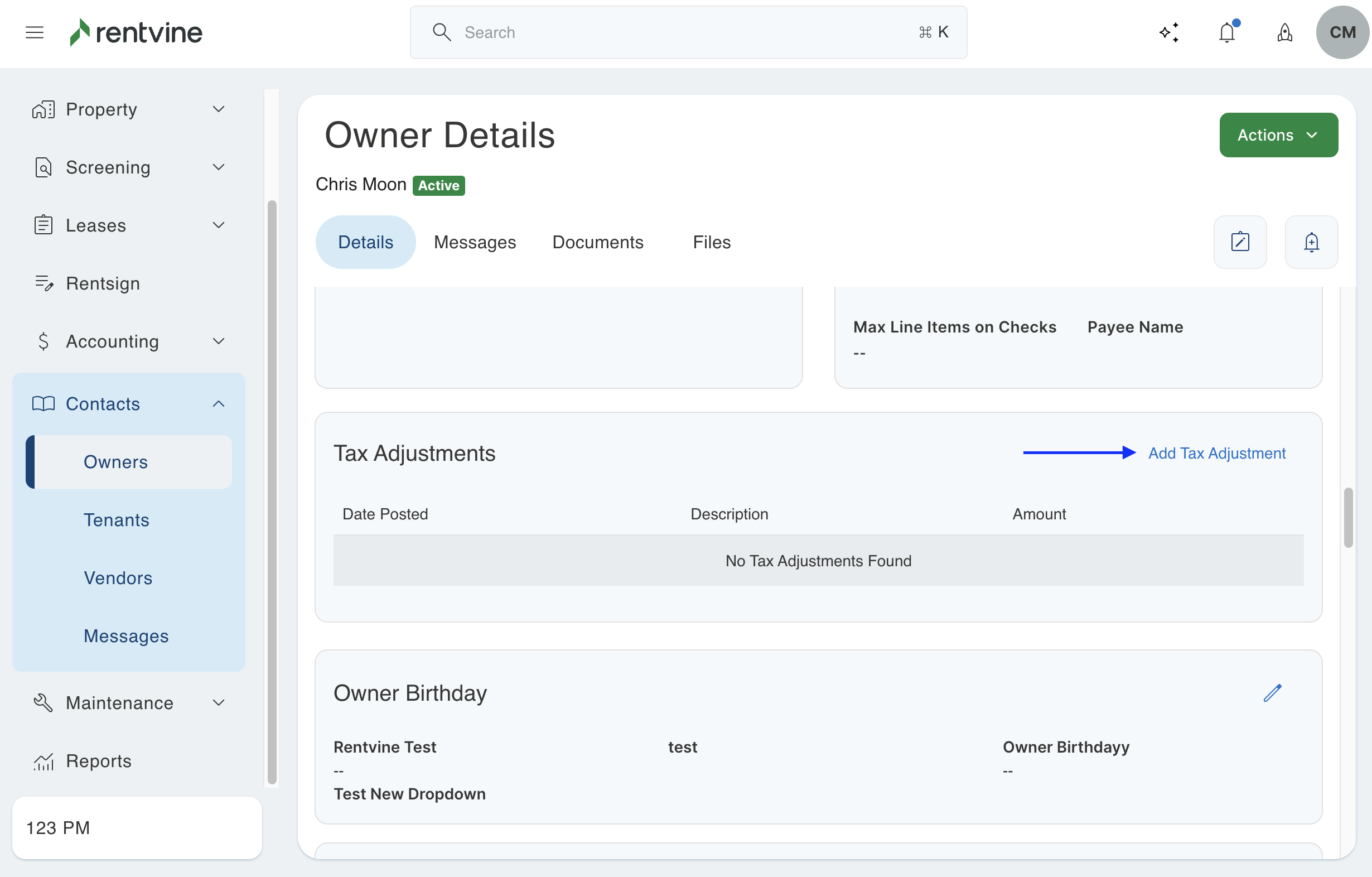 - Once you are in the detail page, scroll down until you see the Tax Adjustments card.