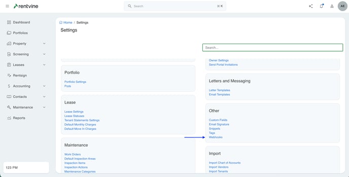Are you looking to send certain information to a third party software when an event occurs in Rentvine? This article will show you how to add a webhook which will accomplish this.