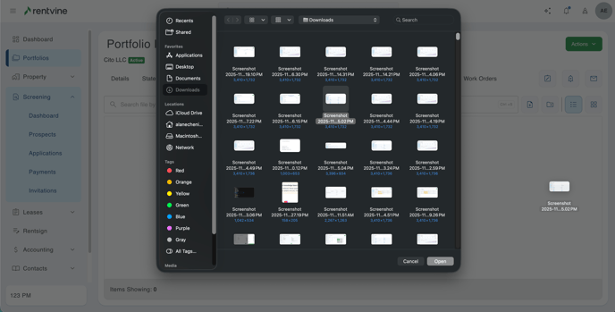 This article will show you how to attach a file to specific areas within Rentvine.