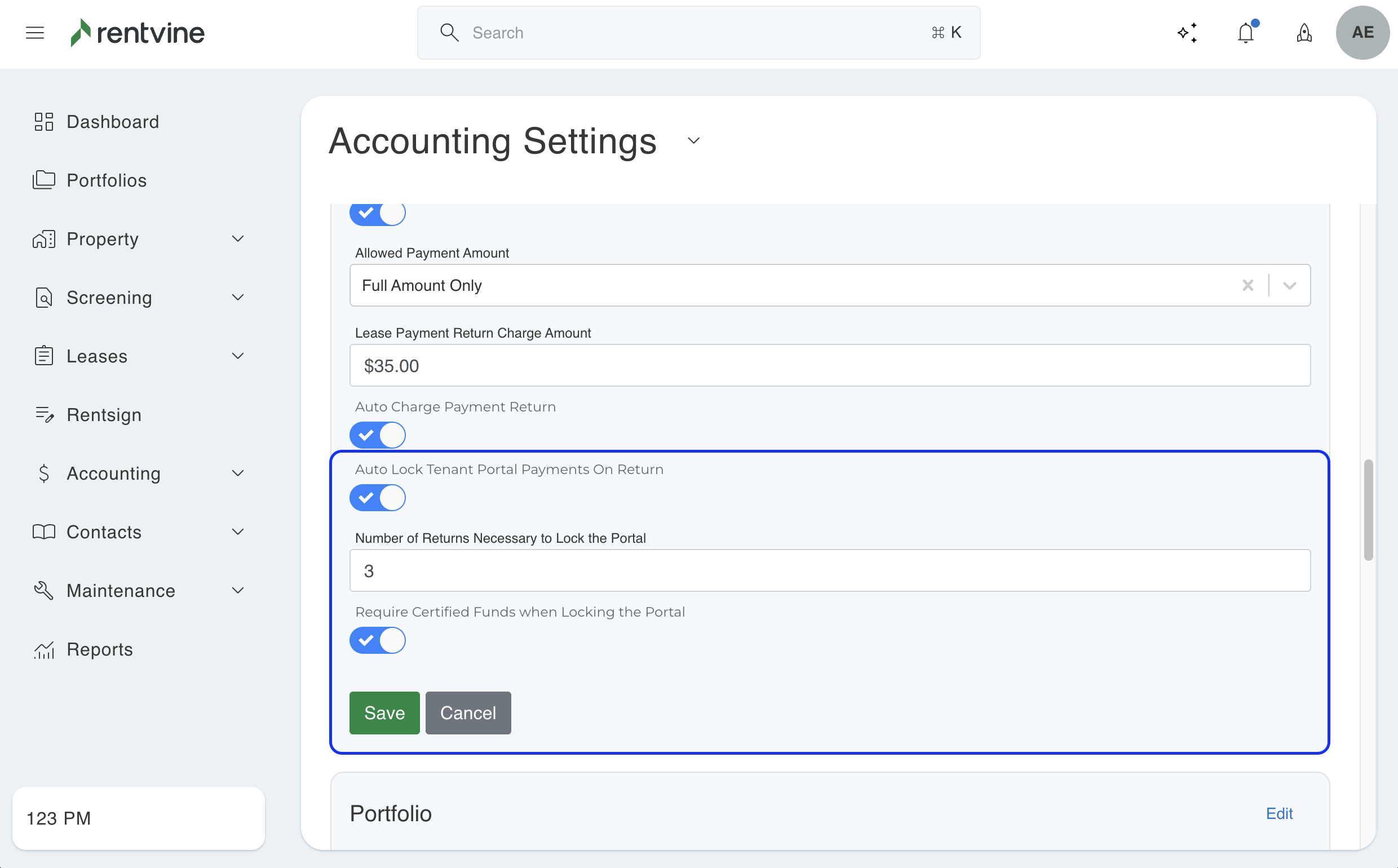 - Number of Returns Necessary to Lock the Portal- This will allow you to change how many times this needs to happen to disable portal payments on a lease