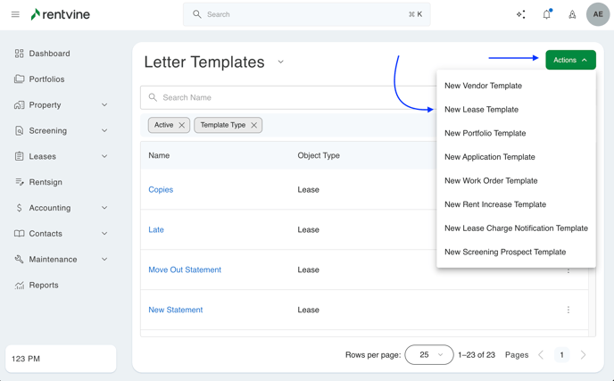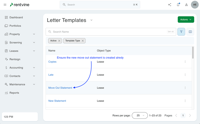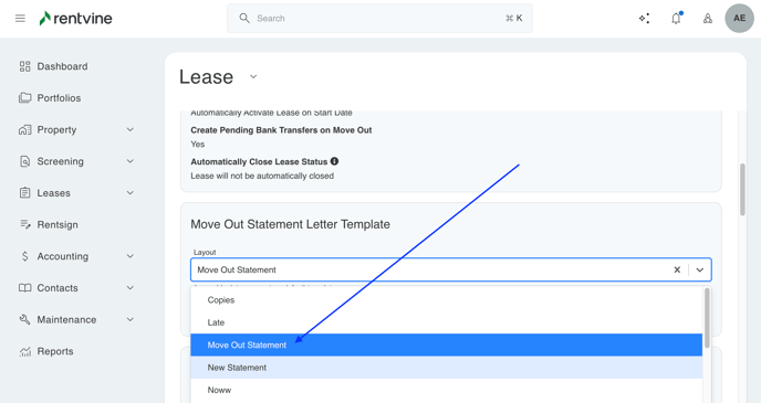 To do this, you can navigate to your Settings > Click Letter Templates > and ensure you have a Lease Letter Template as your New Move Out Statement.