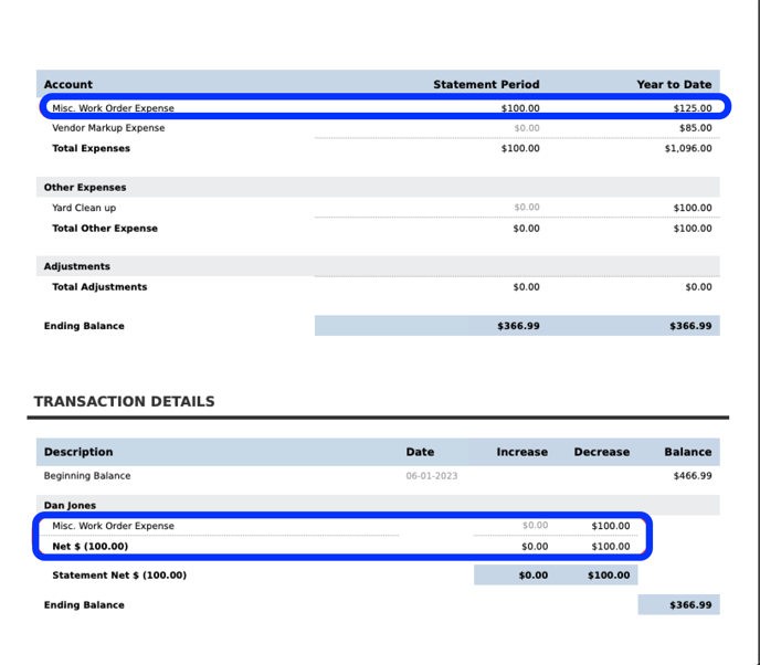 - This will make it so the owner sees one line item for paying the vendor for that whole amount instead of those two separate bills. Please see below for an example of how that will look on an owner statement.