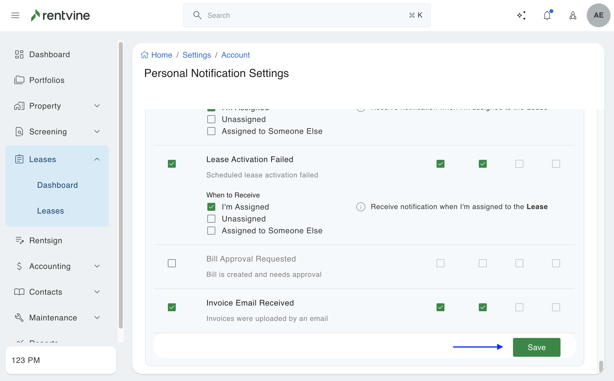 - I'm Assigned- you will only receive this notification for leases/work orders where you are listed as the assignee.