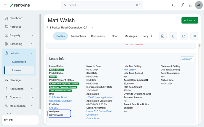 - For lease notifications and work order notifications, you will notice there are added fields for assignees. You will have three options for these notifications.