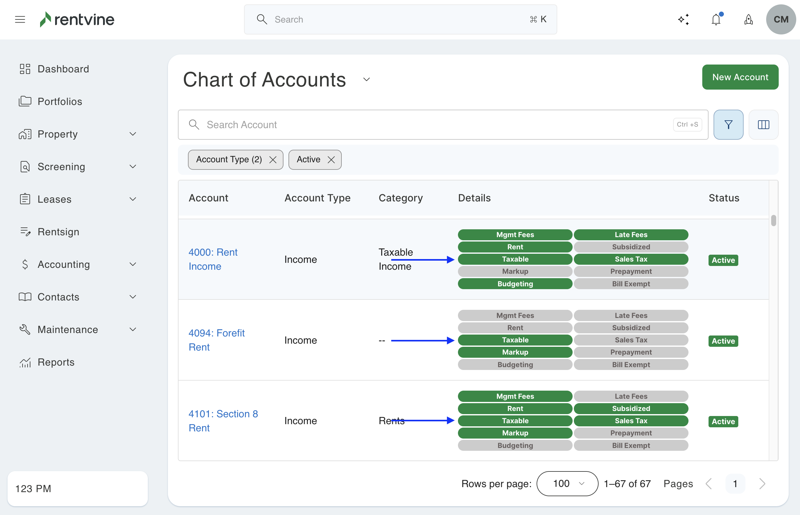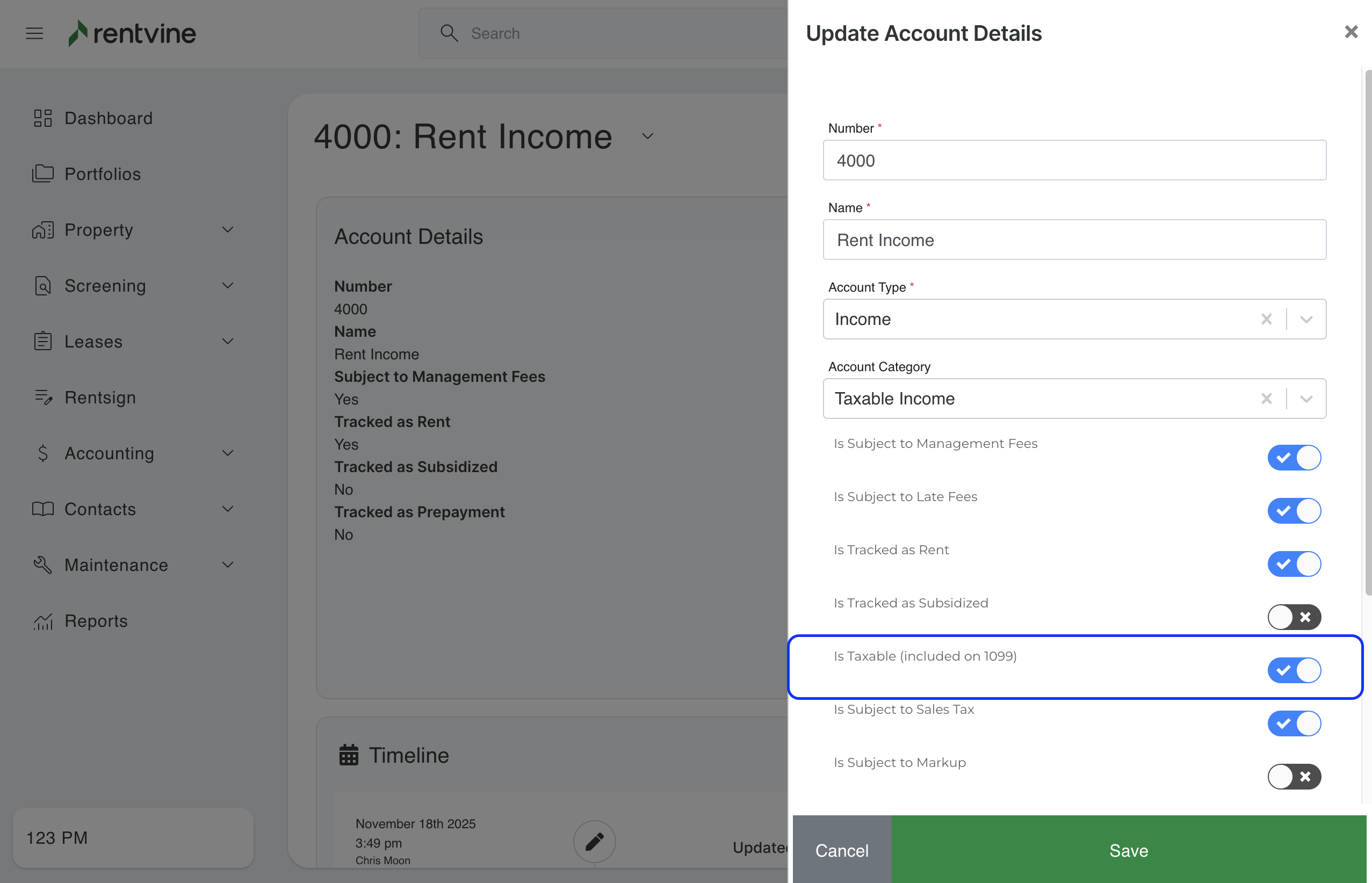Go through the list of income accounts and review which income accounts are set as Taxable (reported as income). If Taxable is green, it means the account is subject to 1099 reporting (report as income).