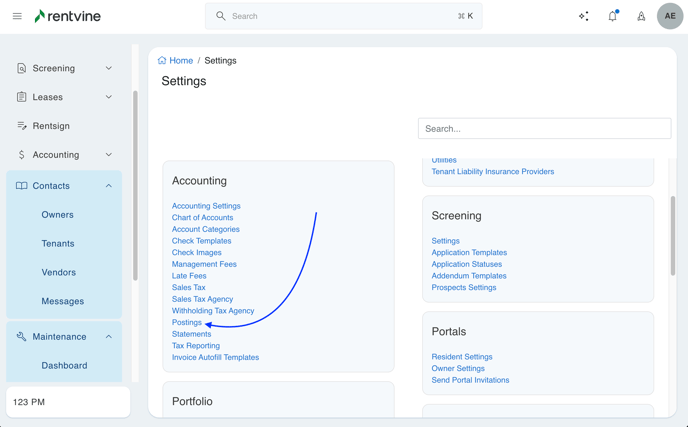 - This will bring you to the Postings screen and show all Postings Settings you have created on your account