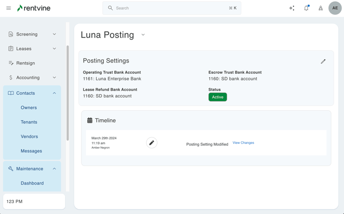 Changing a Posting Setting on a portfolio will not automatically transfer funds from the previously linked Bank Accounts to the new Bank Accounts associated with the updated Posting Setting. You will need to complete a bank transfer to transfer these funds. How to do a Bank Transfer