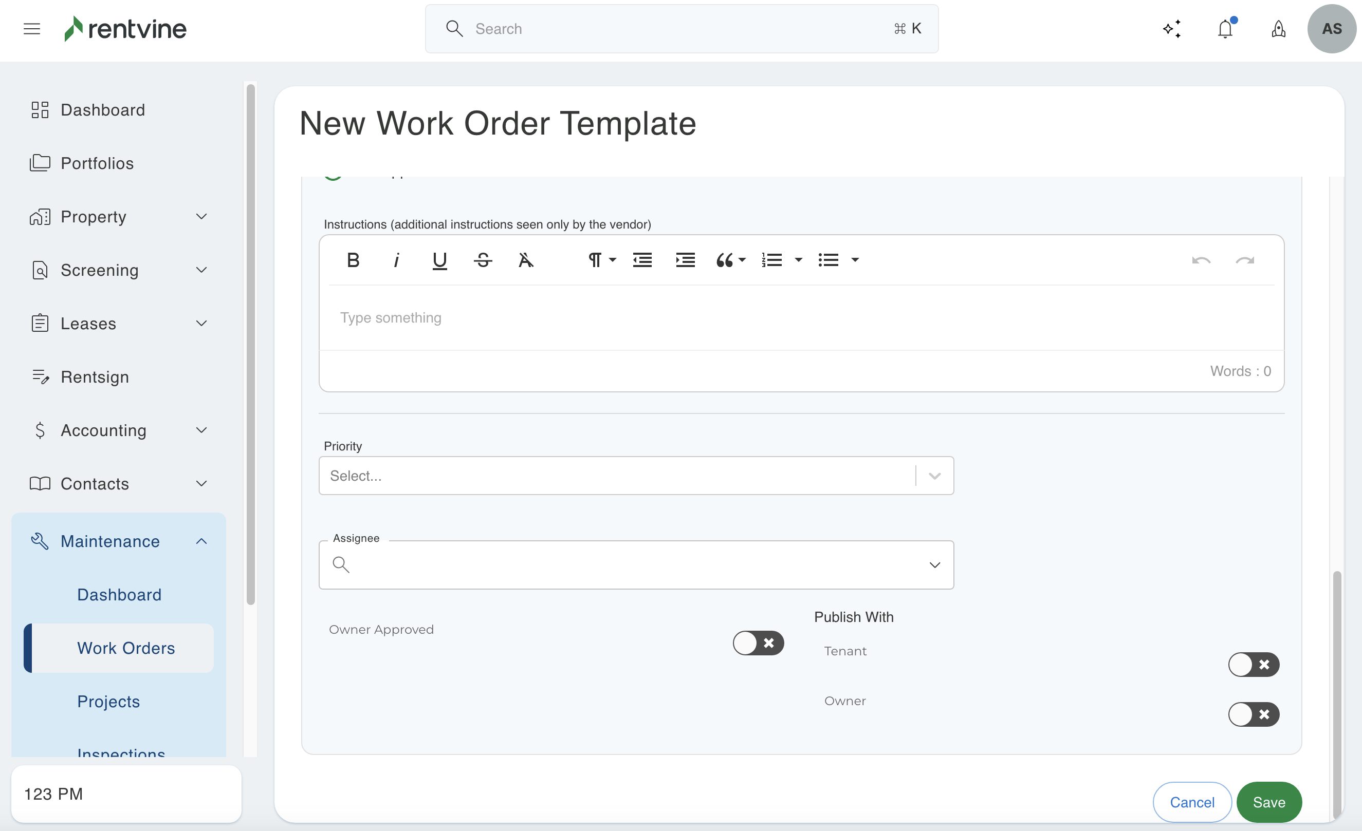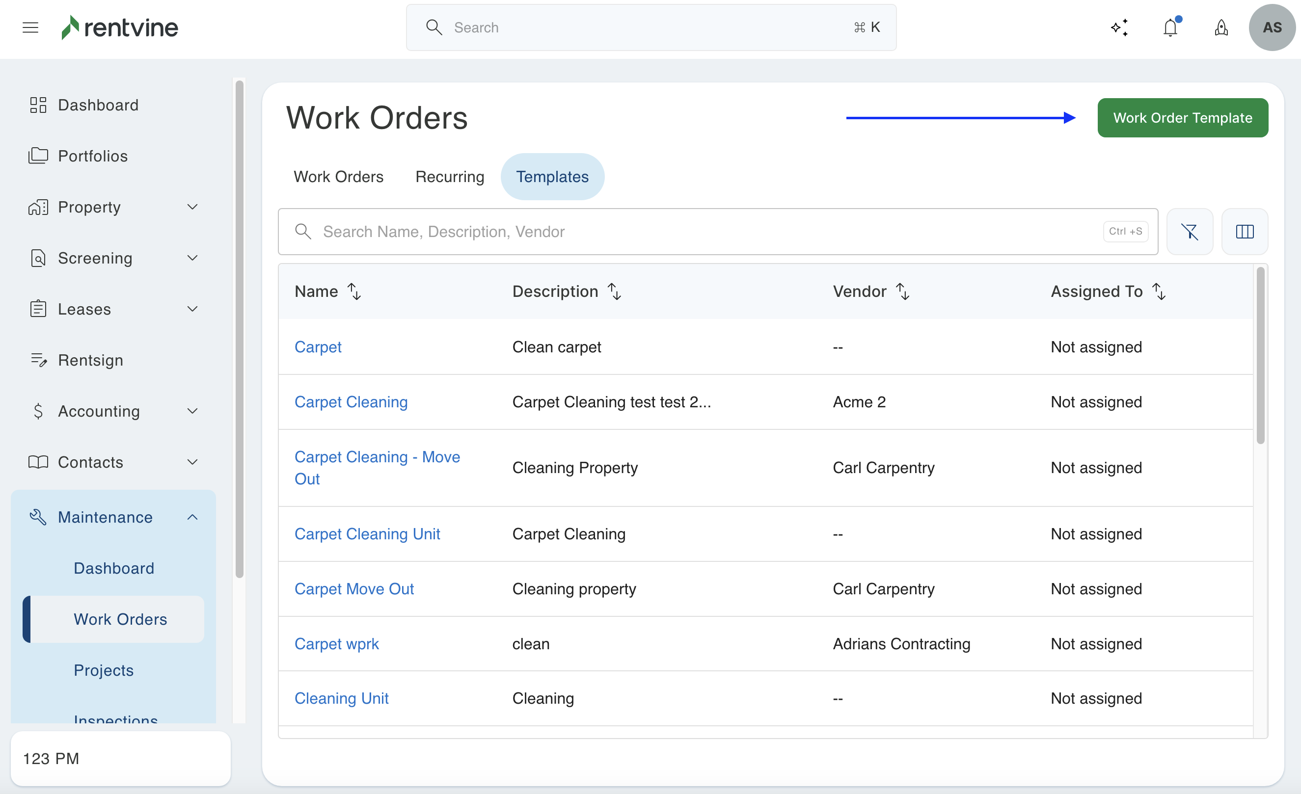 This article will go over the steps on how to create a work order template within the Rentvine system.