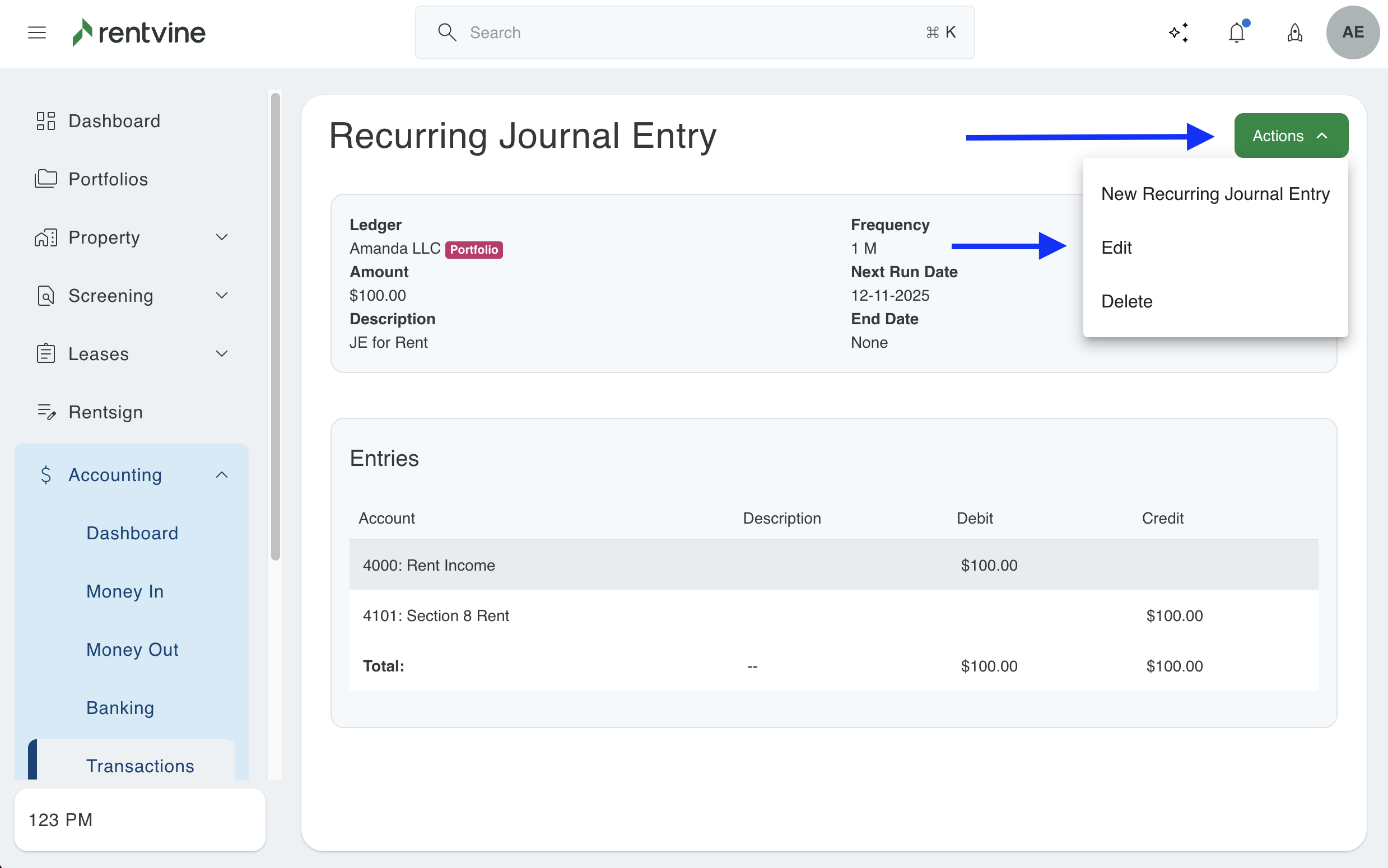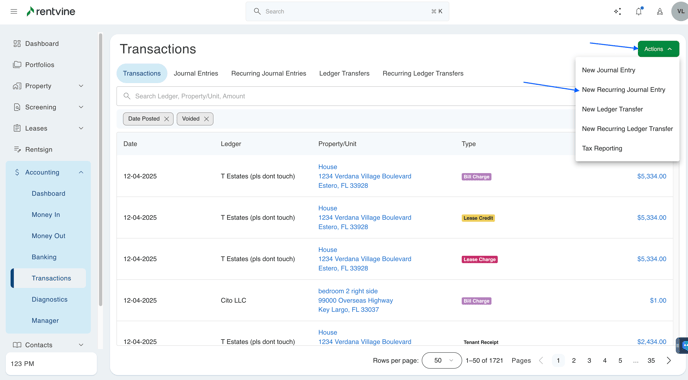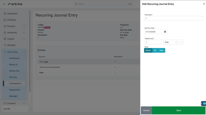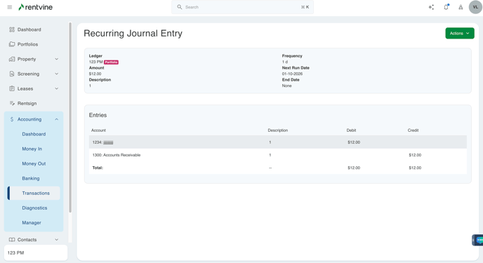 This article will go through how to create a Recurring Journal Entry within the Rentvine Software.