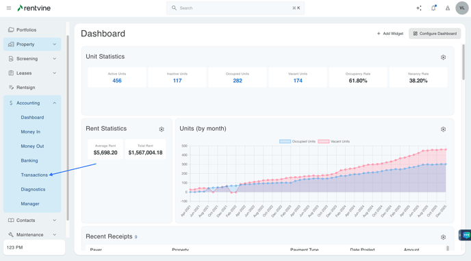 - To start, you will need to navigate to the Accounting Tab and click Transactions.