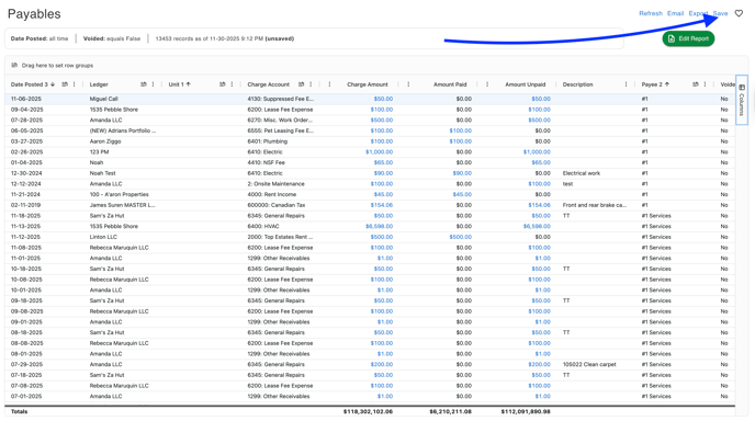 - On the Reports screen, you will see two tabs, Details and Scheduled Reports. Under Details, there will be a section on the left for all of your Saved Reports, and there will be several sections for the standard reports that you can customize and create. If you already have a saved report, you will be able to create a schedule for that report. If not, select one of the reports from the other sections, such as Accounting Reports, Lease Reports, Portfolio Reports, etc.