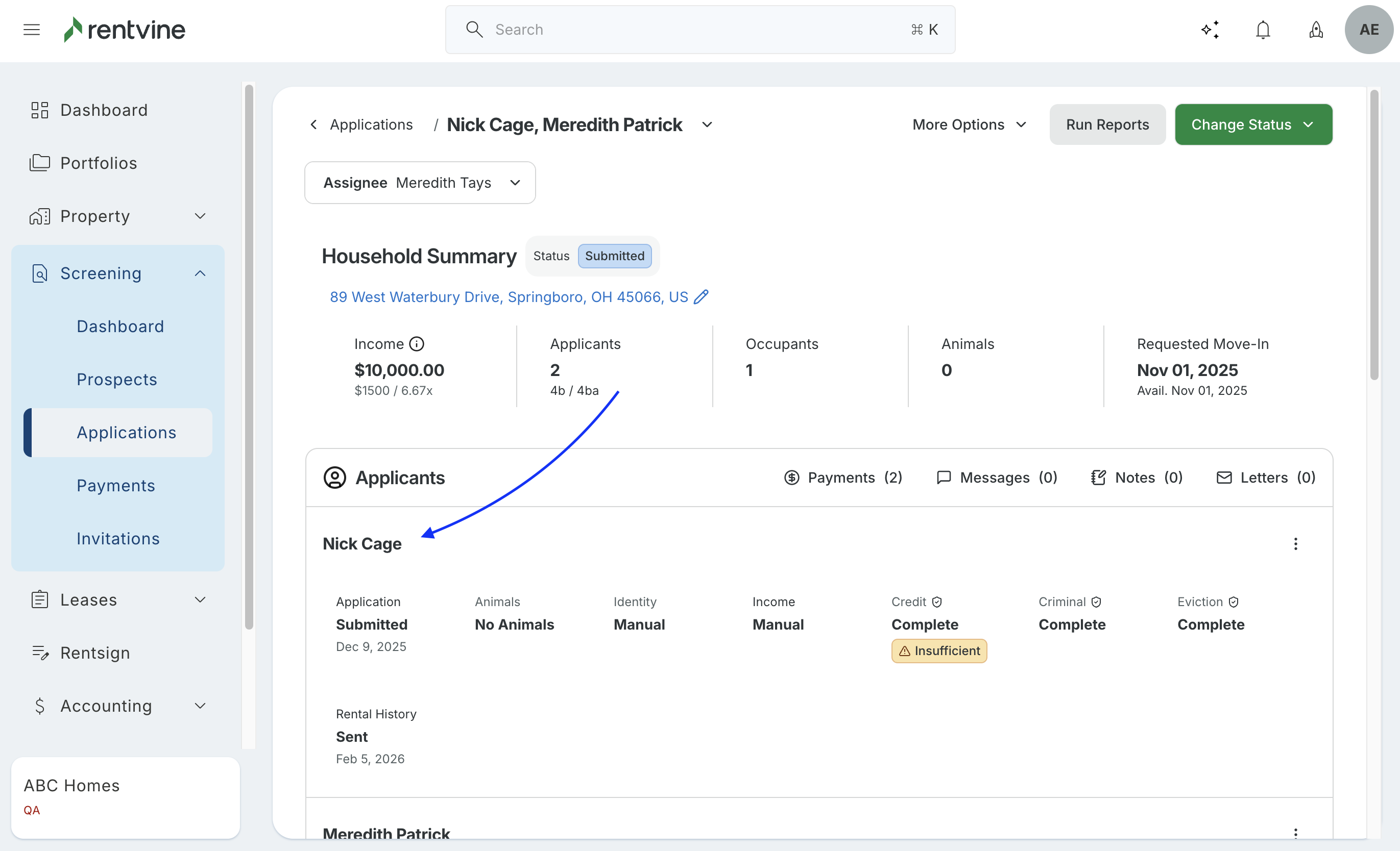 - Click the Applicant Name