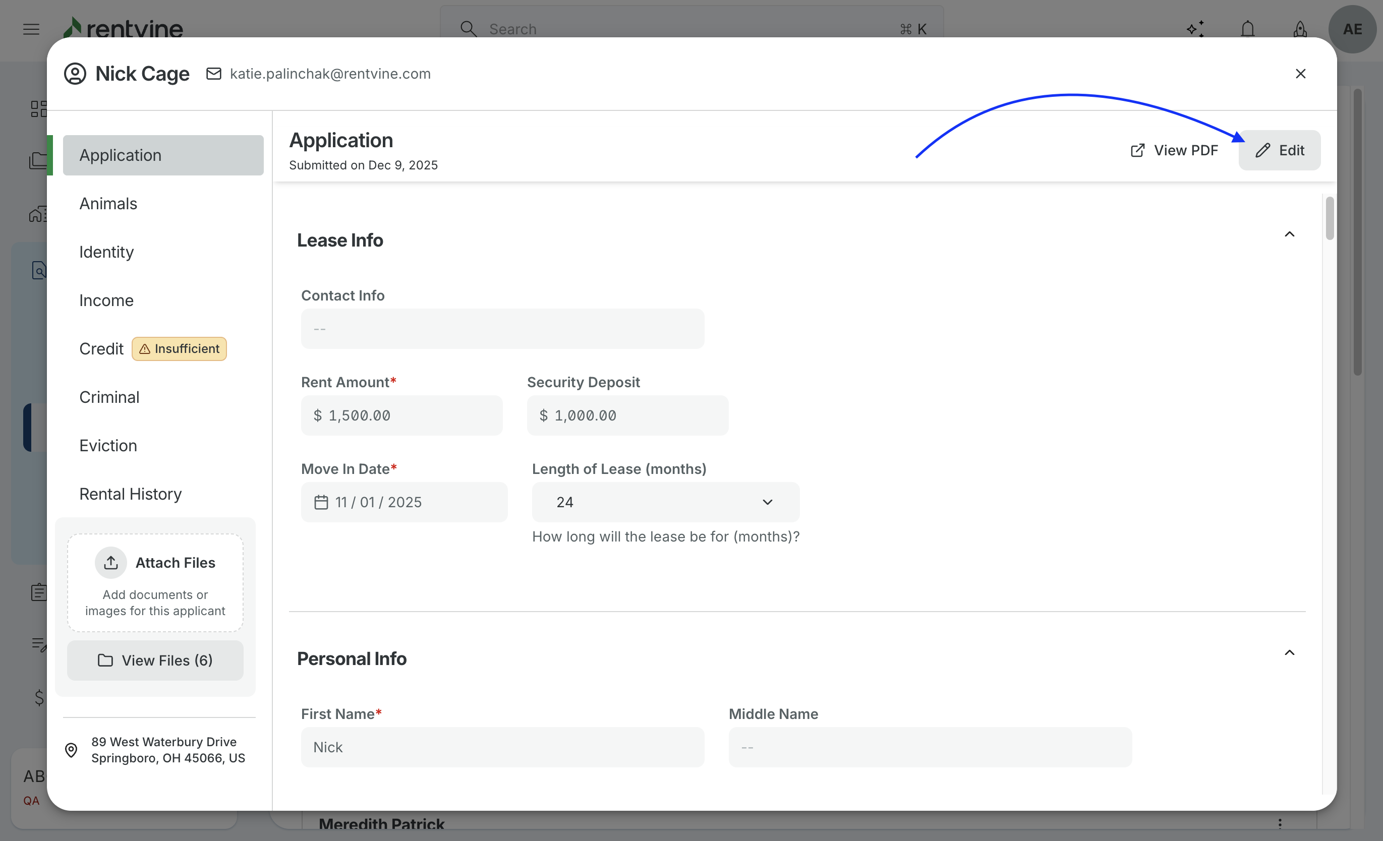 - On the Applicant's Application, select Edit