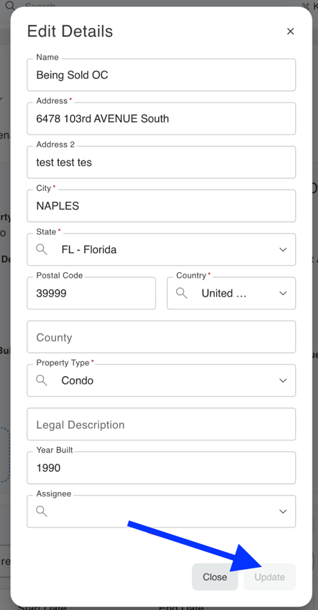 - On the next screen, enter the Property Code/Address in the search field that you would like to change