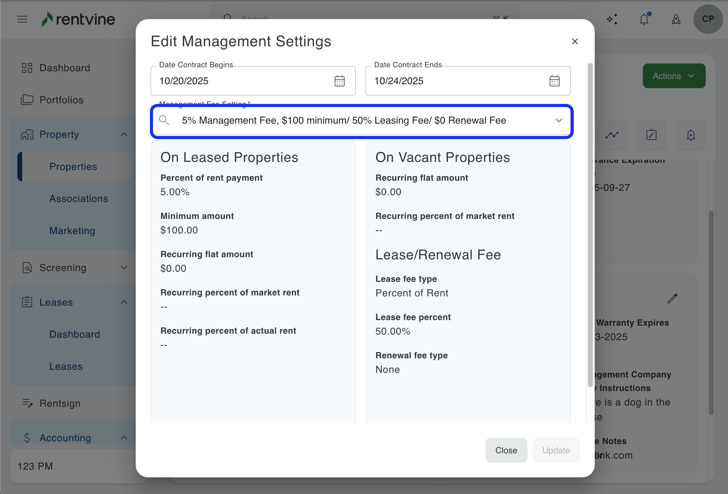 How to Edit the Management Fee Setting of a Property