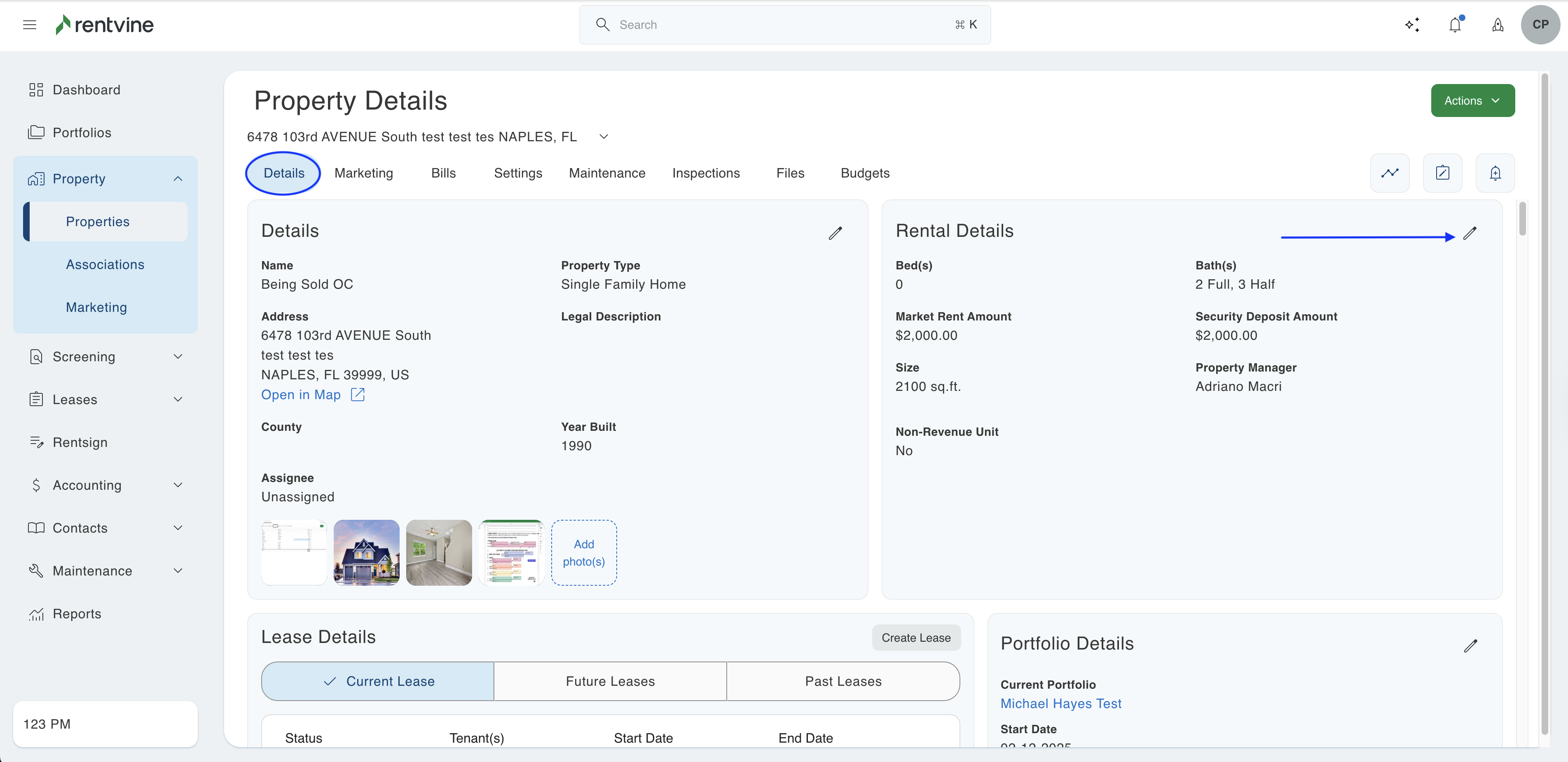 Once selected you will look in the "Details" tab for a box called "Rental Details". In top right of the box you will click the Edit button.