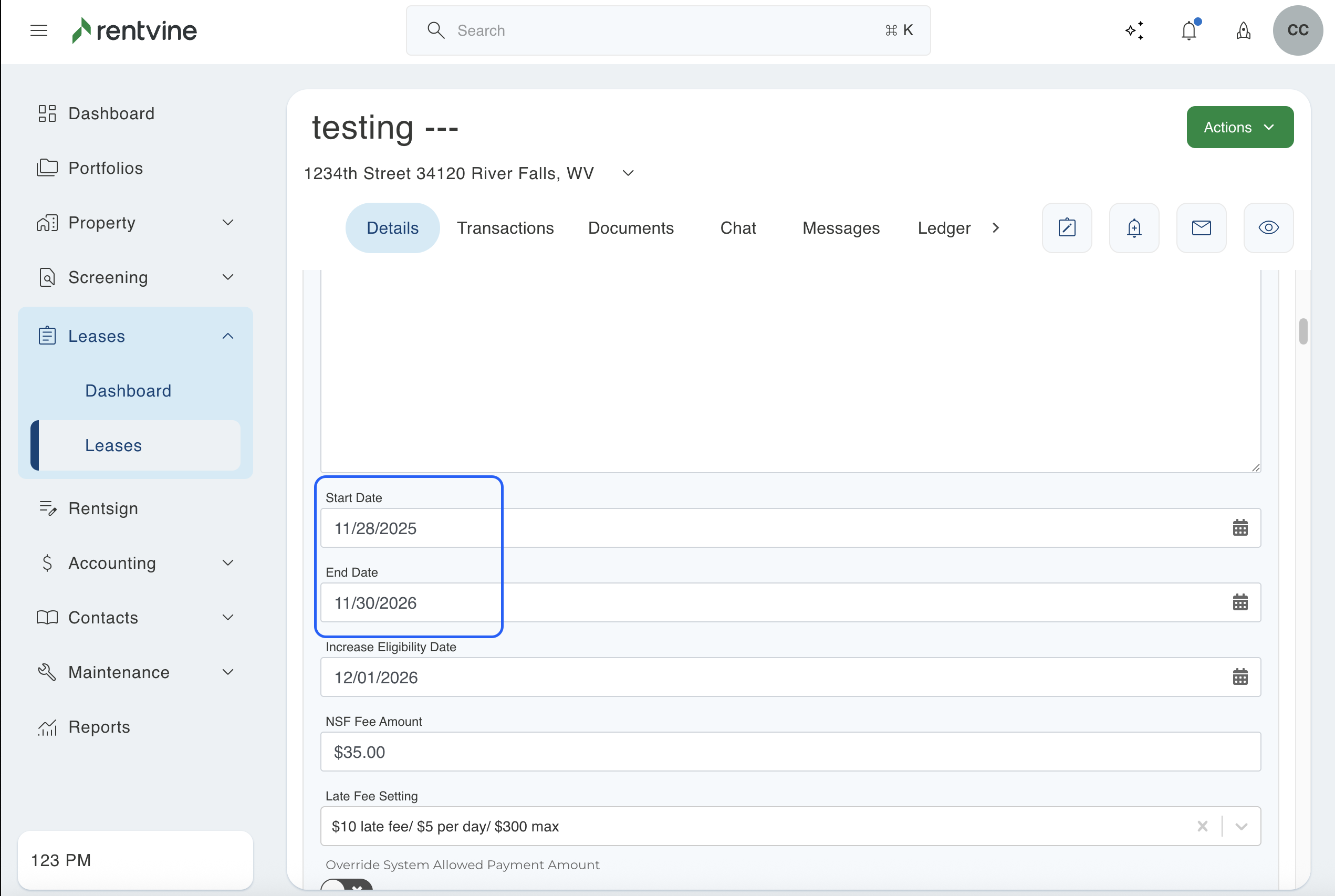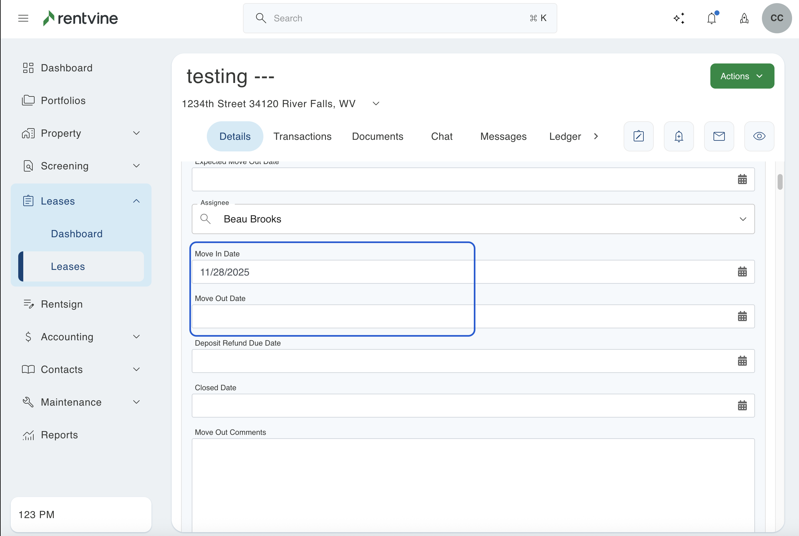 How to Edit the Move In Date, Start Date, and End Date of a Lease