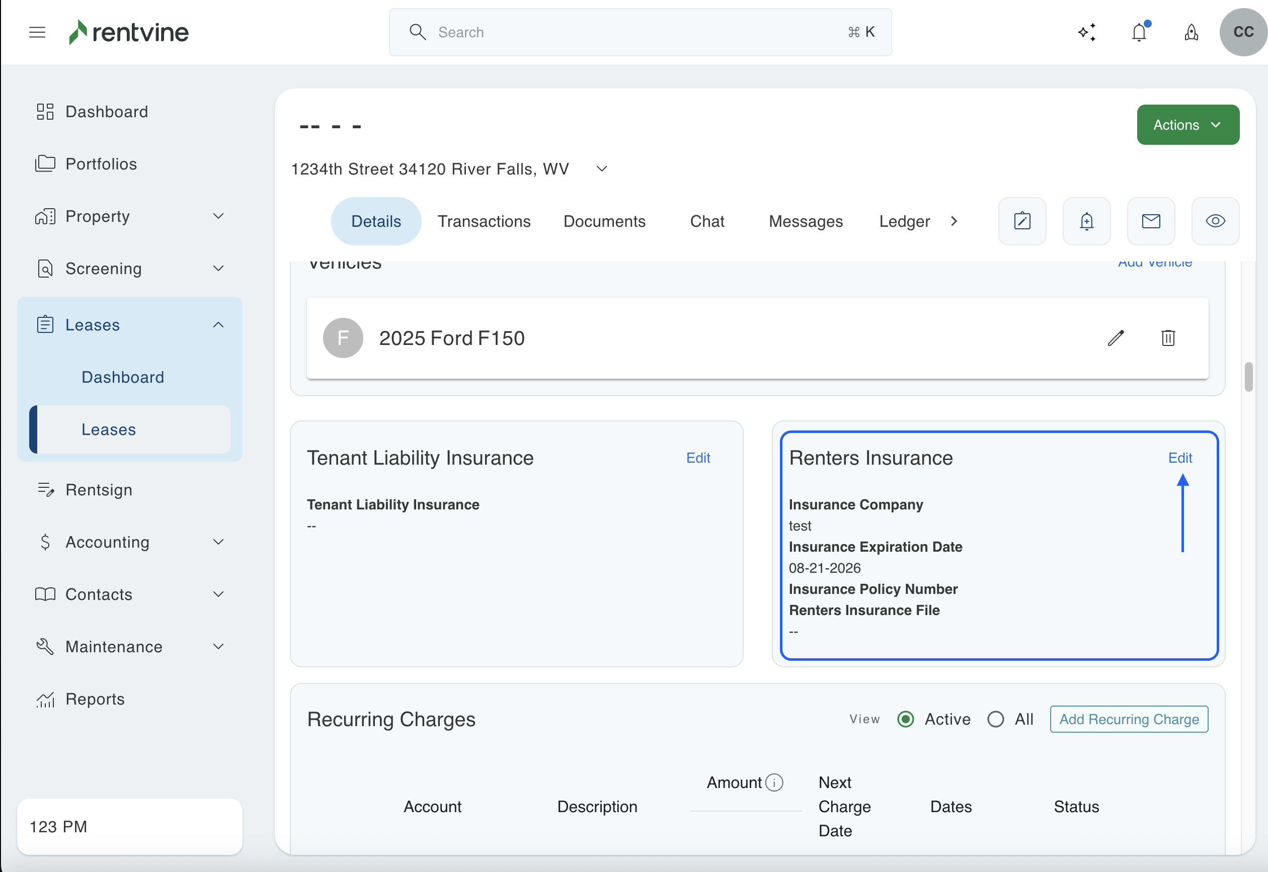 Do you need to change the renters insurance information for a specific tenant? This article with show you how to edit the renters insurance of any lease in Rentvine