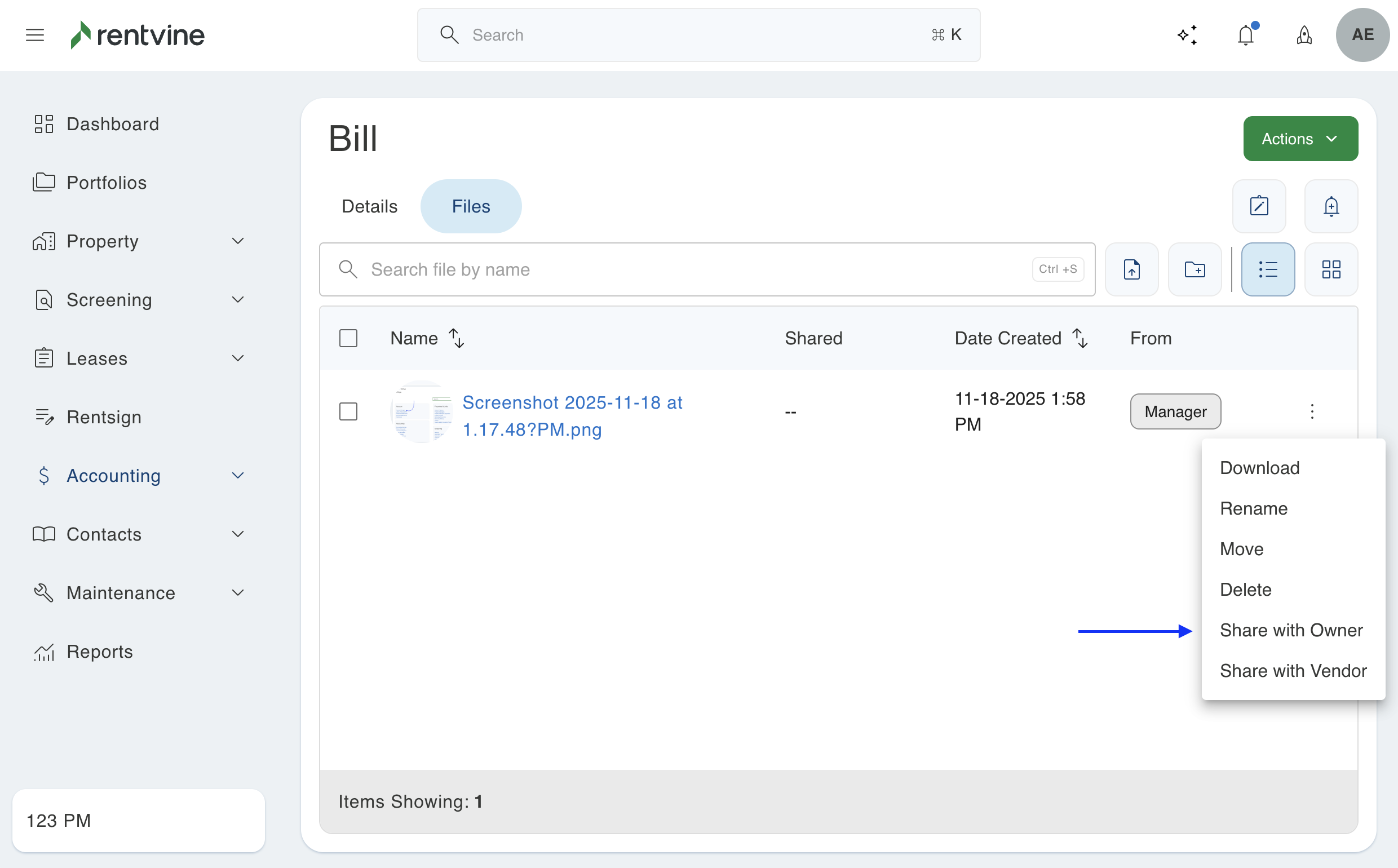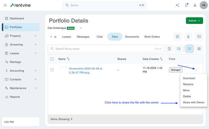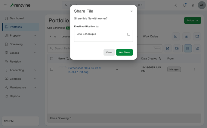 This article will show you how to share files with owners from the portfolio view and also show you how to share a file from a bill to an owner