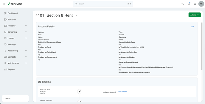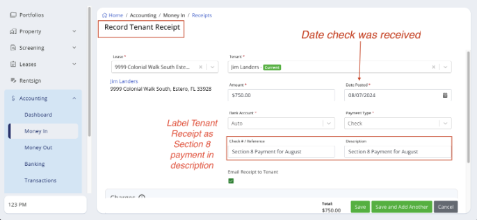 1. Ensure you have an income Chart of Account setup to receive section 8. These will have the same toggles as your regular rent income account.