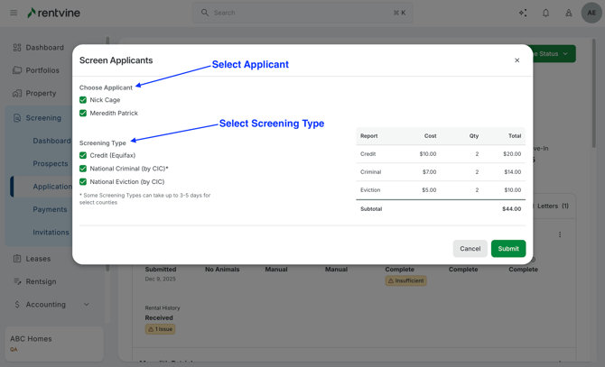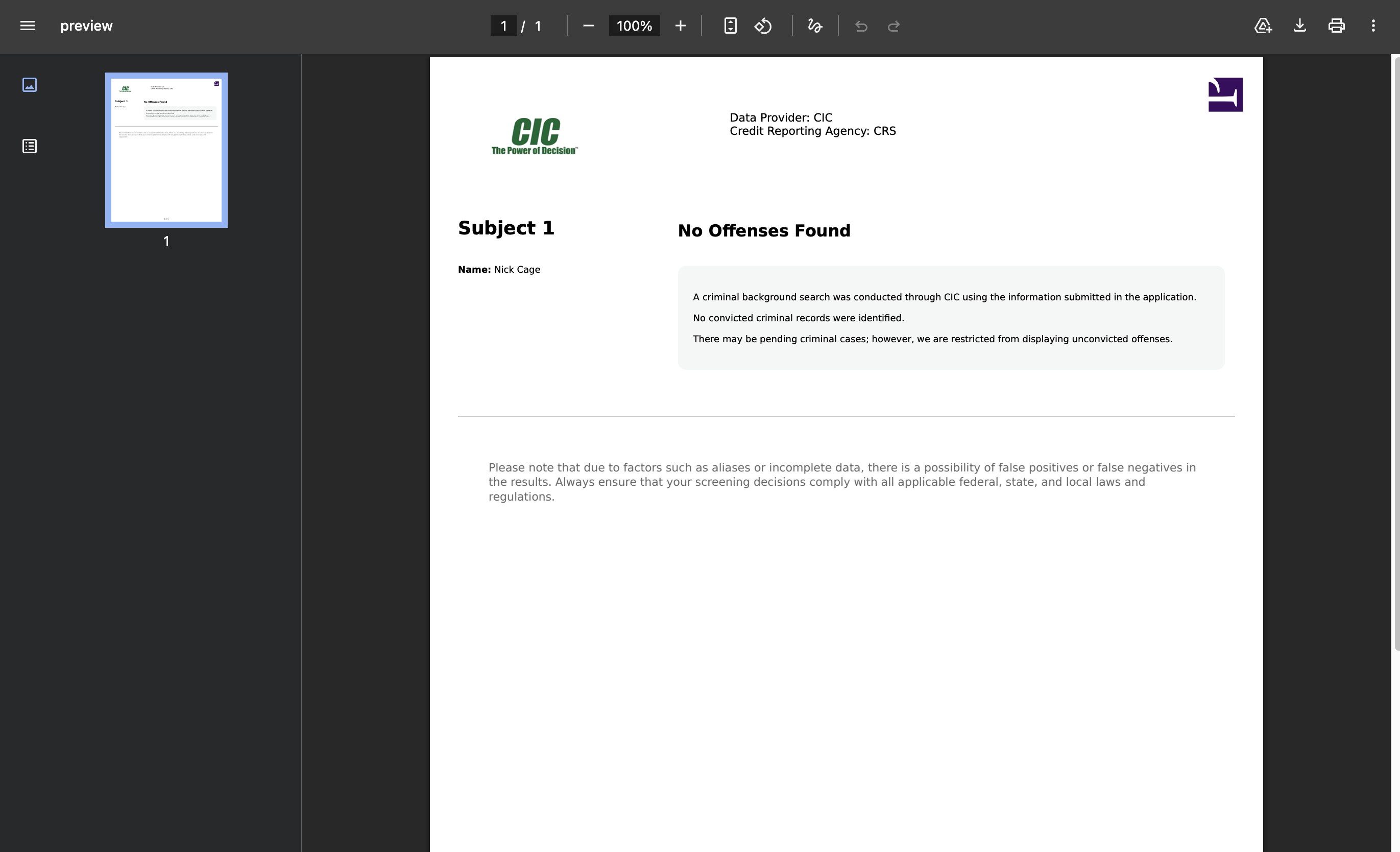 • The screening should take no more than 30 seconds. However, if the reports are taking longer than normal to pull, you can refresh the page or click out of the screening window, and our system will notify you through email that the reports have been completed.