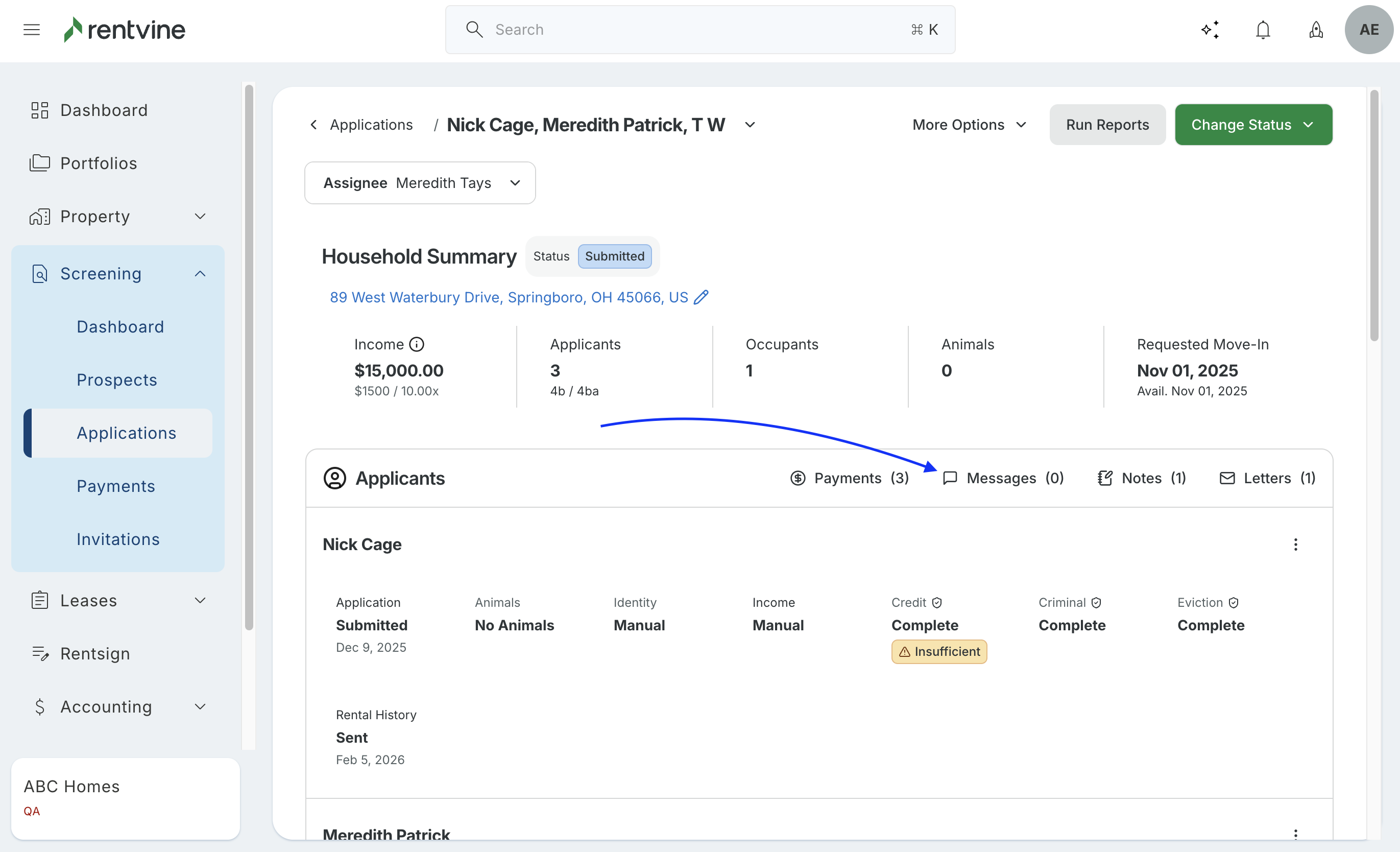 - Once on the Applications page, click on the applicantyou want to email