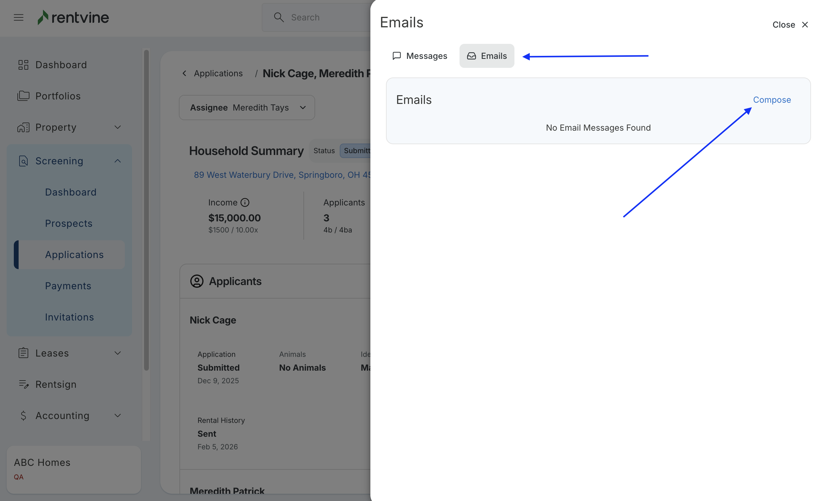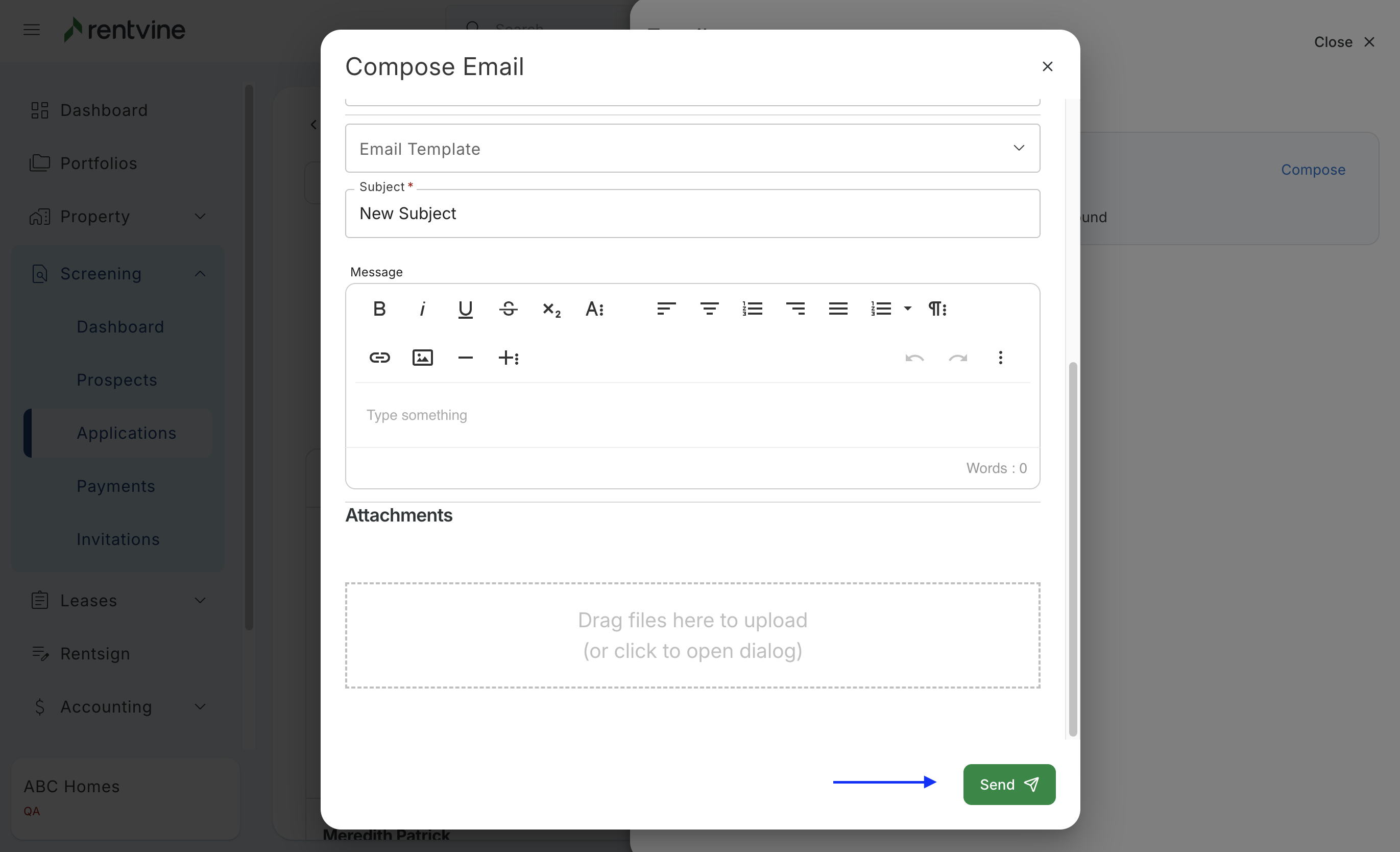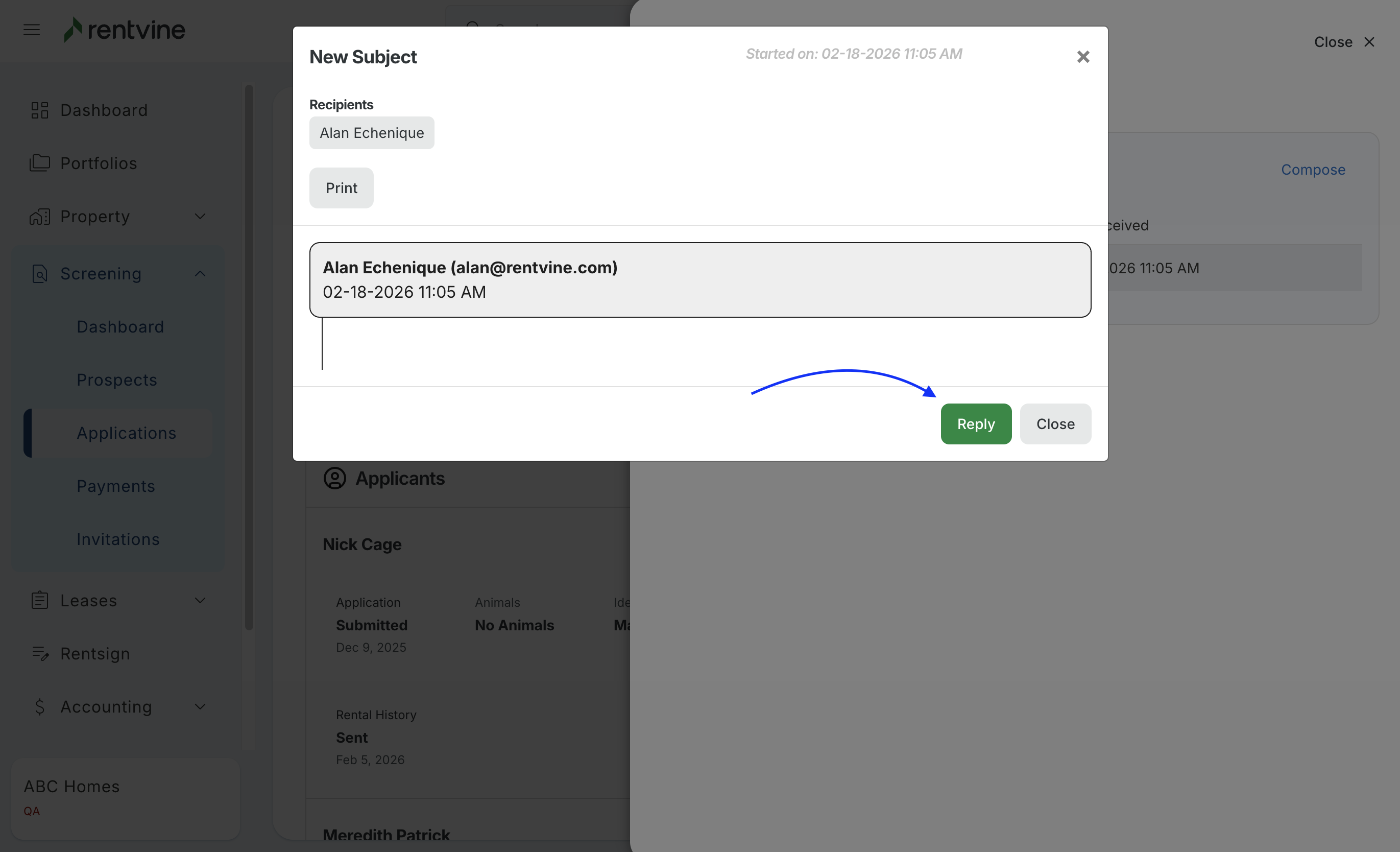 - You will then be able to view the email that was sent out by Rentvine's system. The correspondence will filter within the Email Message area as each party responds.