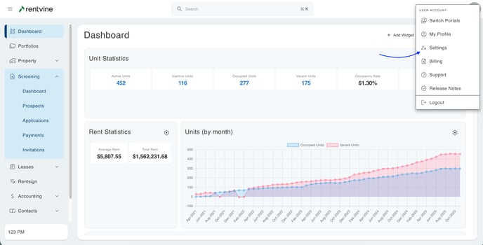 • From the dashboard view of Rentvine