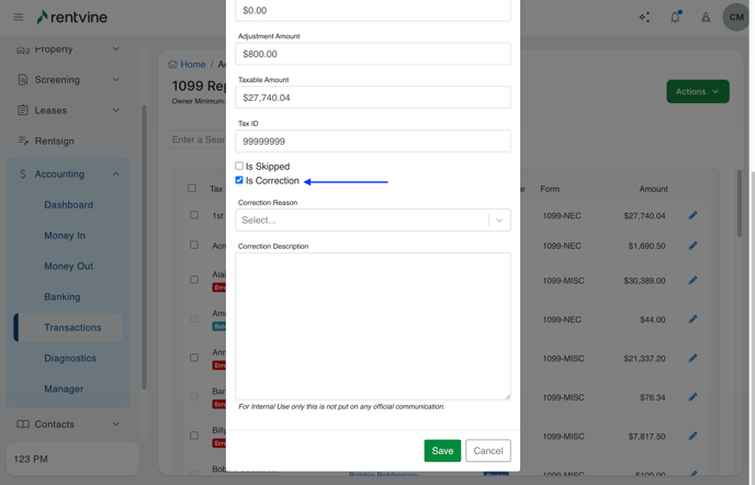 If the Correction Reason is "Payment Amount." Please update the Taxable Amount and click Save.