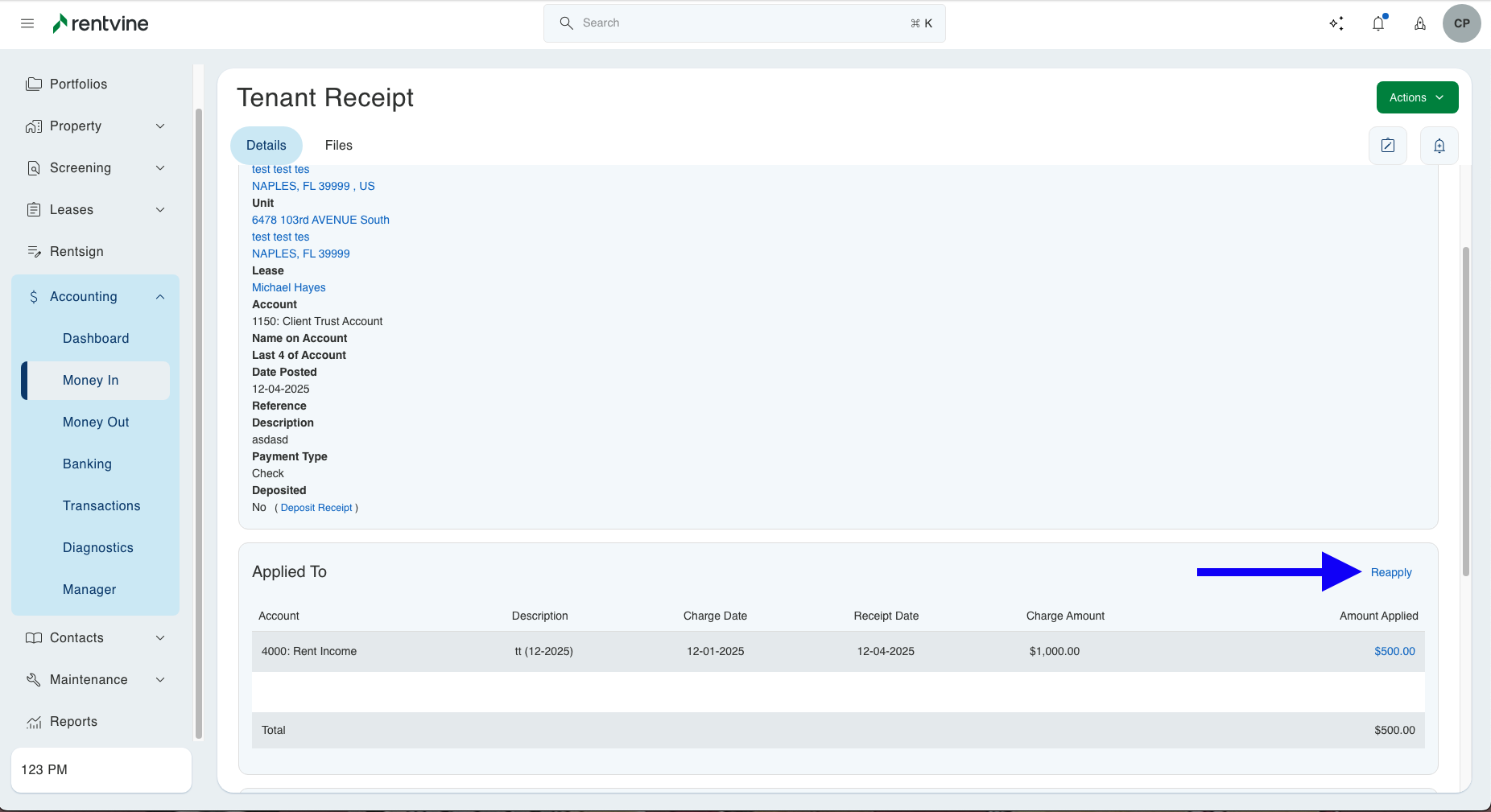 - Click on the Tenant Payment that you want to transfer to open up the details page.
