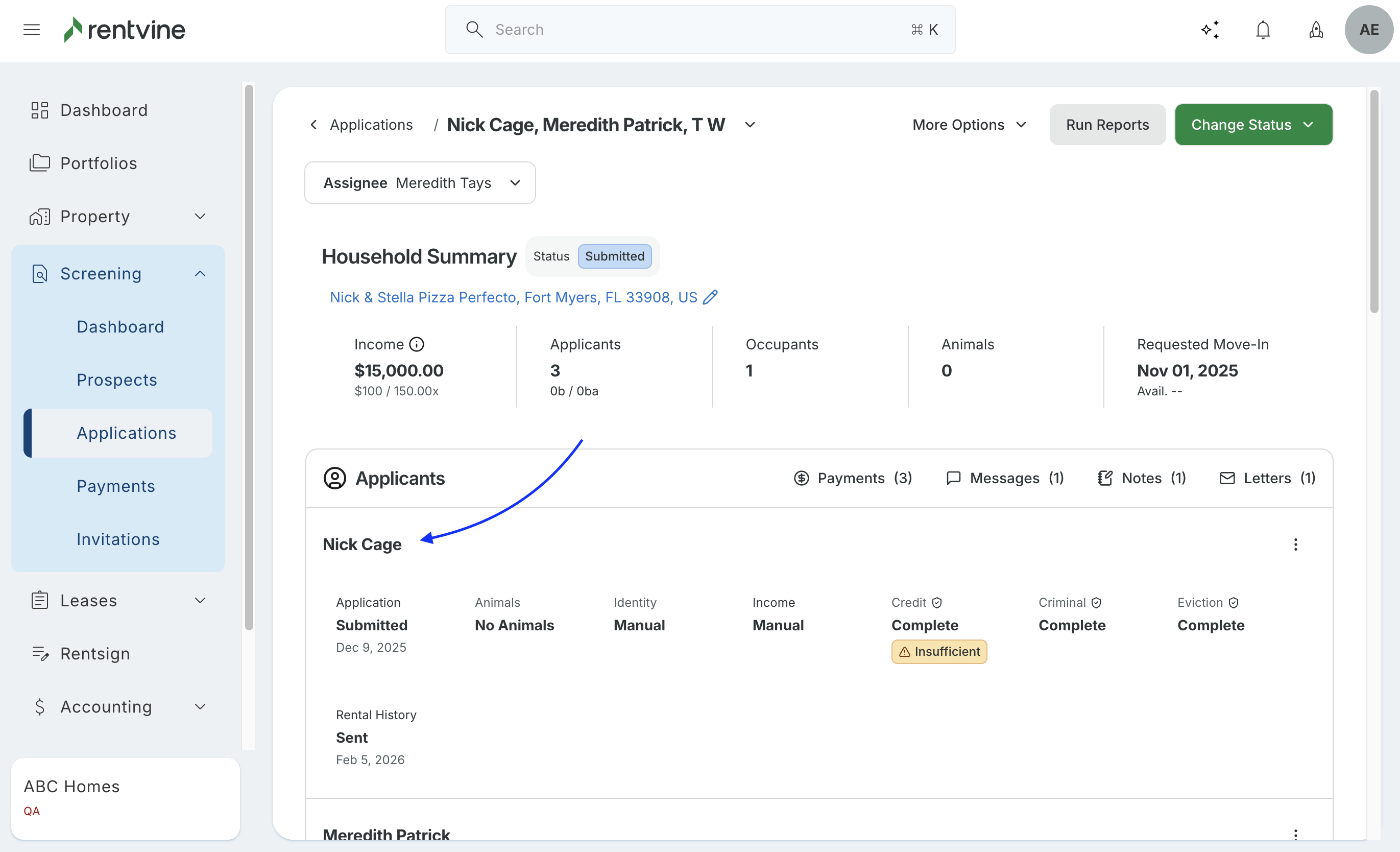 - When new applications are submitted, you will begin to see the landlord verification automatically populate. To view these, you can go to a specific application and click View Applicant.