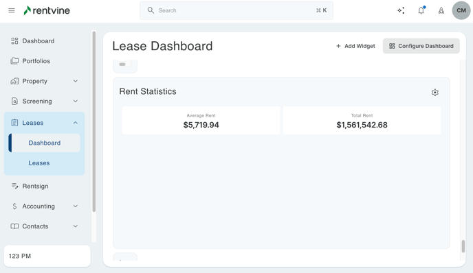 - Rent Statistics- This will allow you to display the average rent and the total rent of all of the leases in the system.