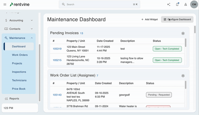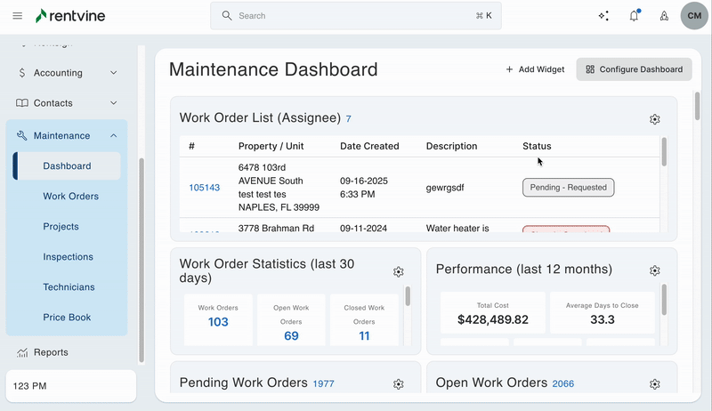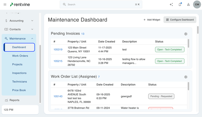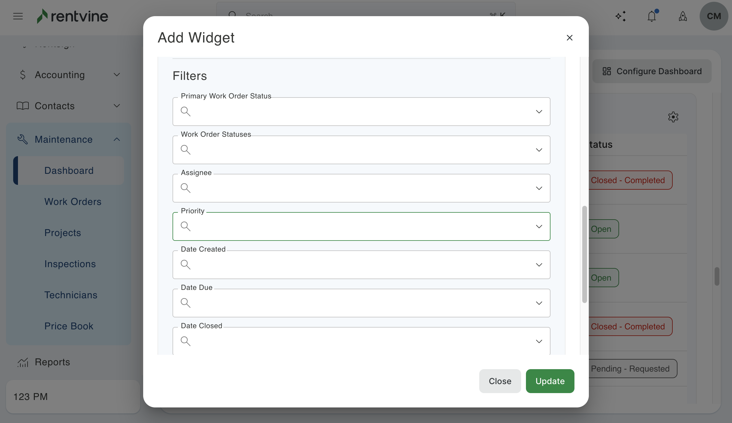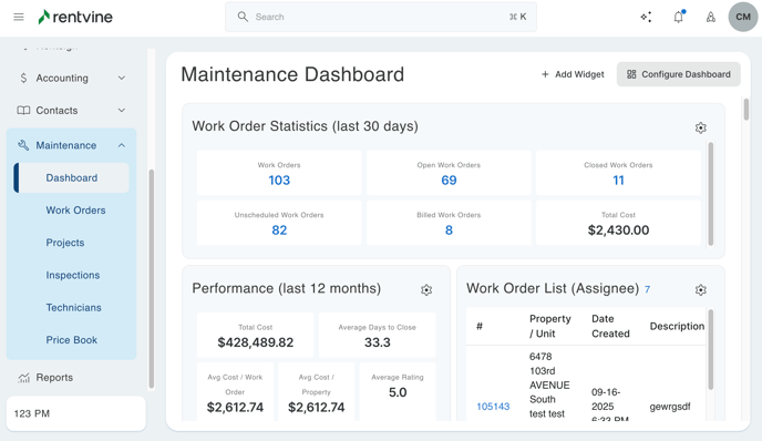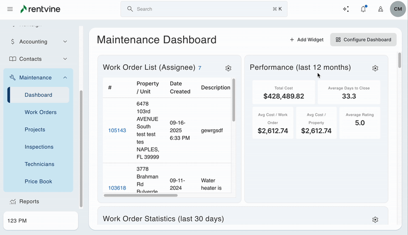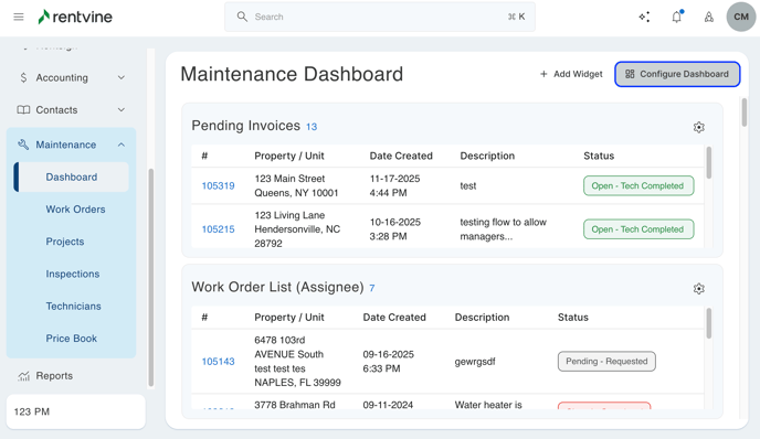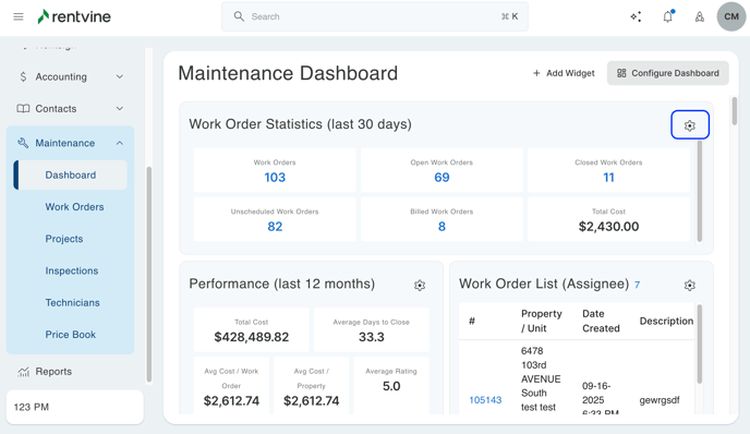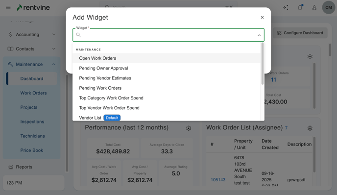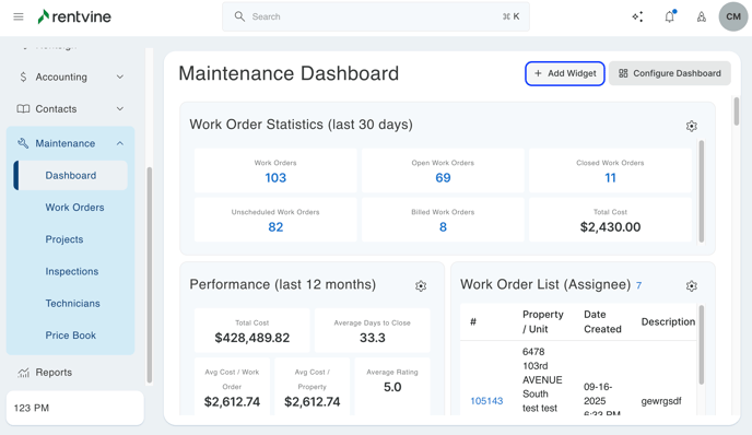 This article will walk you through customizing and adding widgets to your maintenance dashboard.