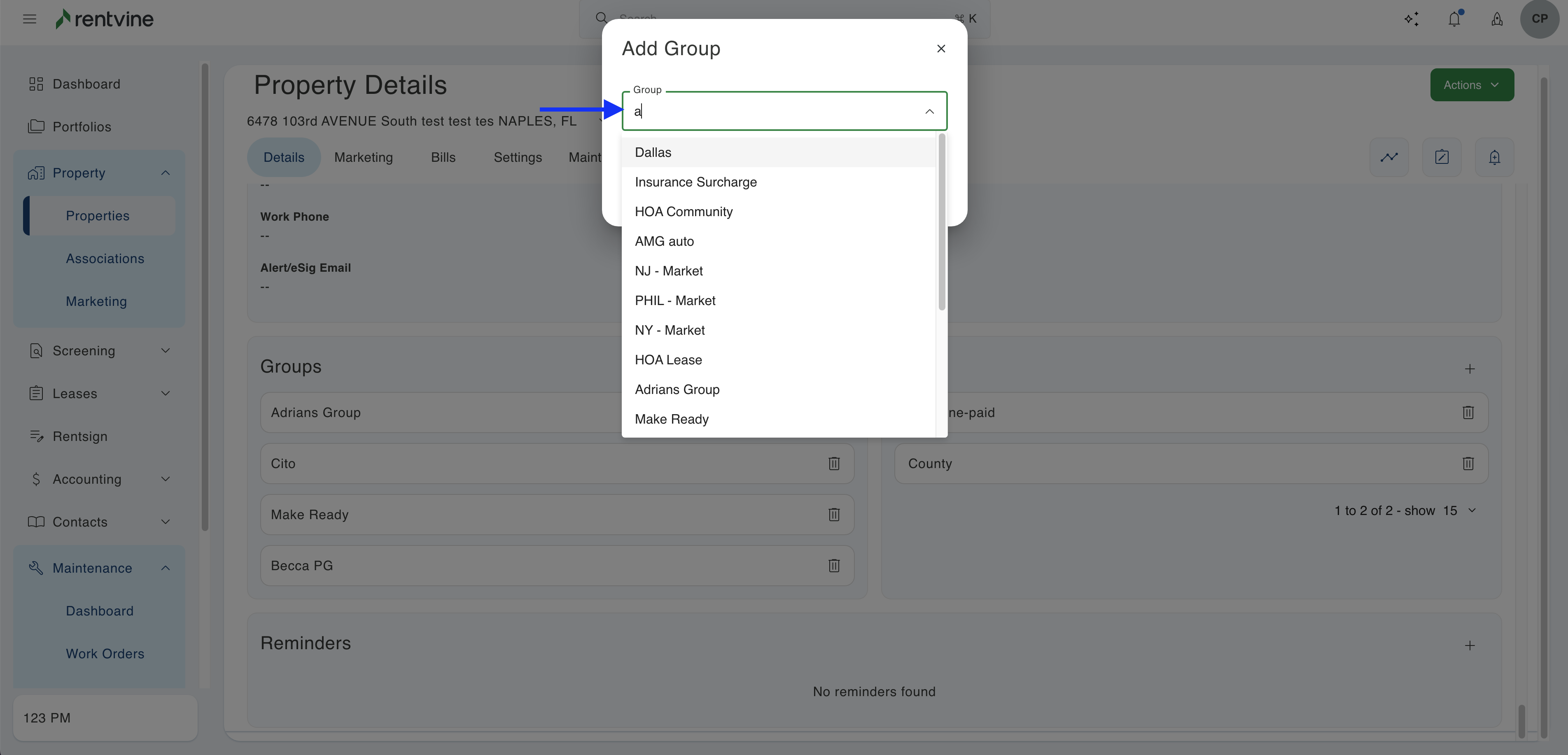 Before getting started you need to have already created a group in Rentvine. If you still need to do this please refer to "How to Create a Property Group".