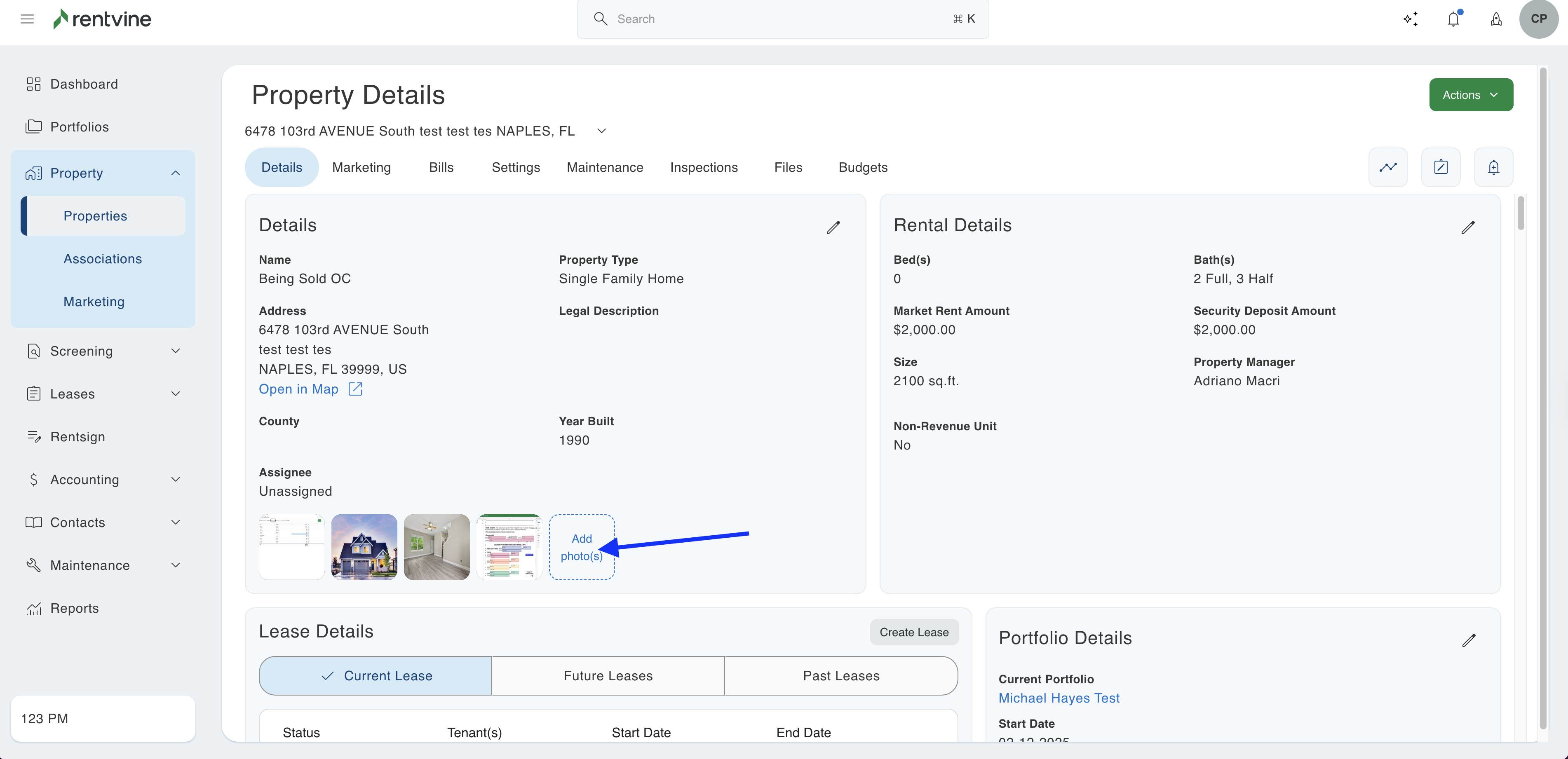 This article will show you how to add photos/images to a specific property in Rentvine.