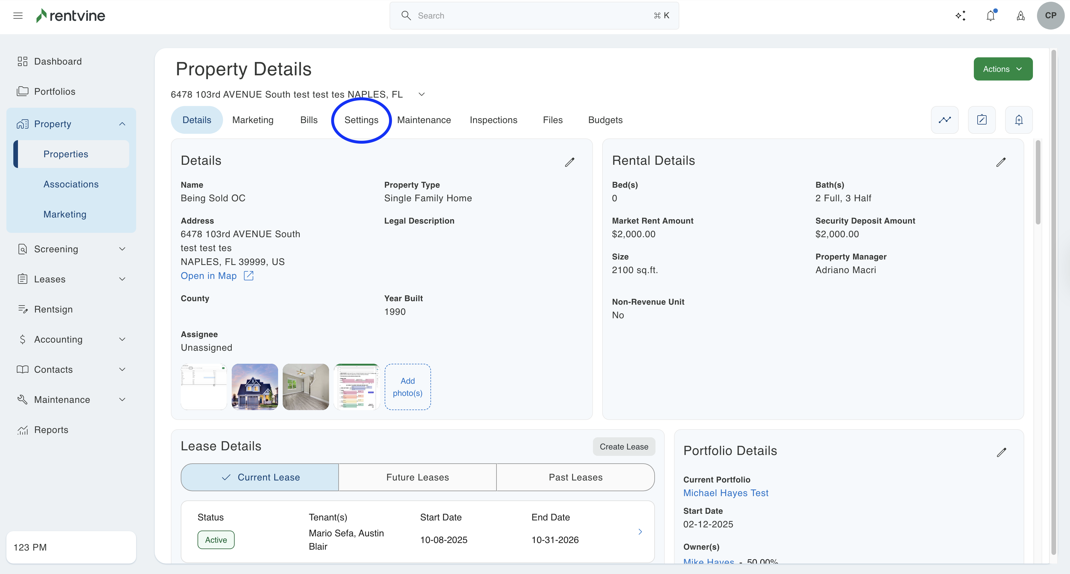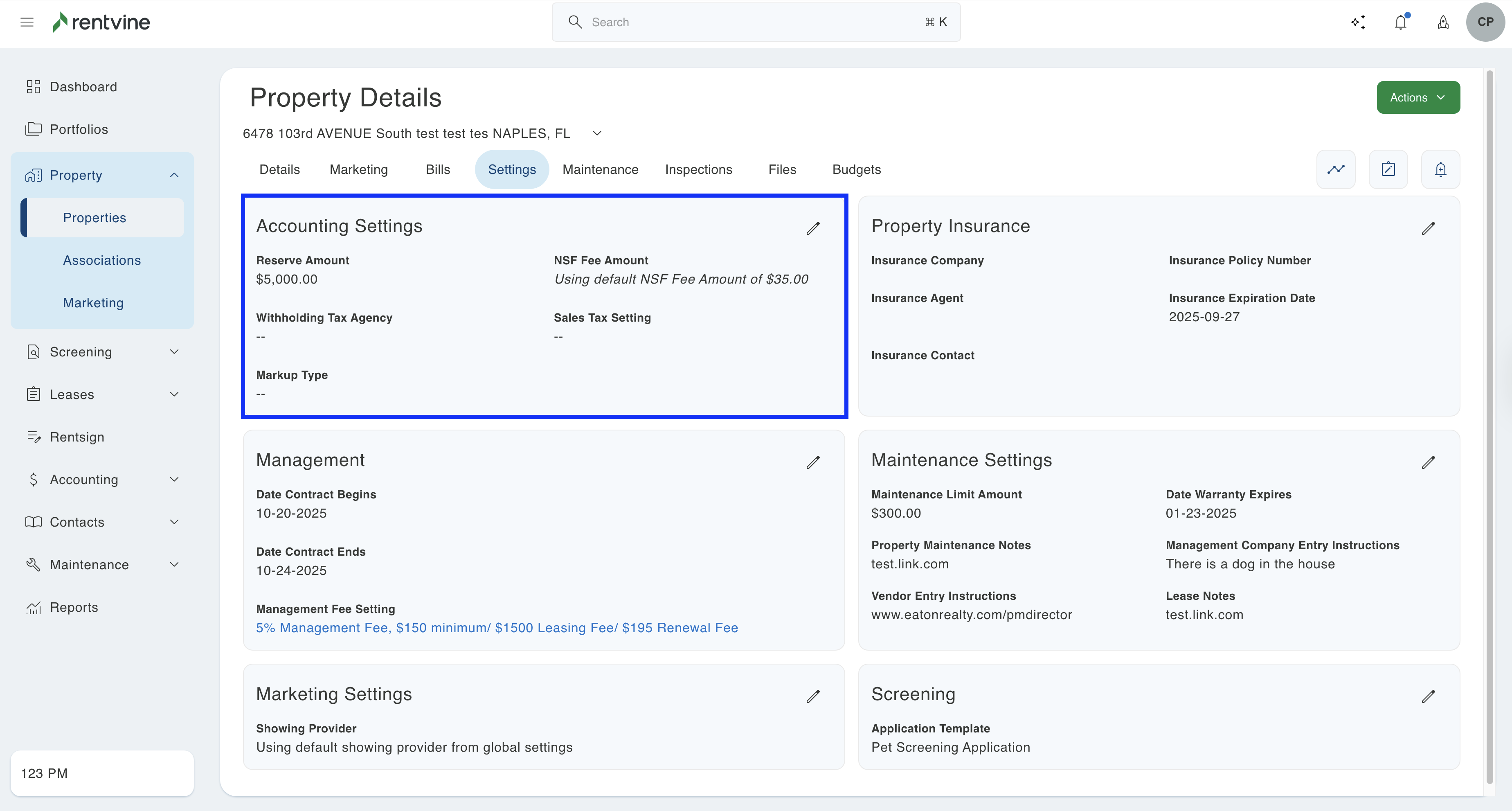 - From the dashboard view of Rentvine, click on the Property dropdown on the left-hand side
