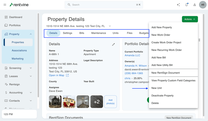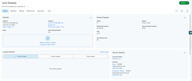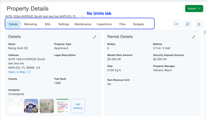 - If the property is set up as a multi-unit property, you should see a “Unit” tab located at the top of the property page, just above the Details section.